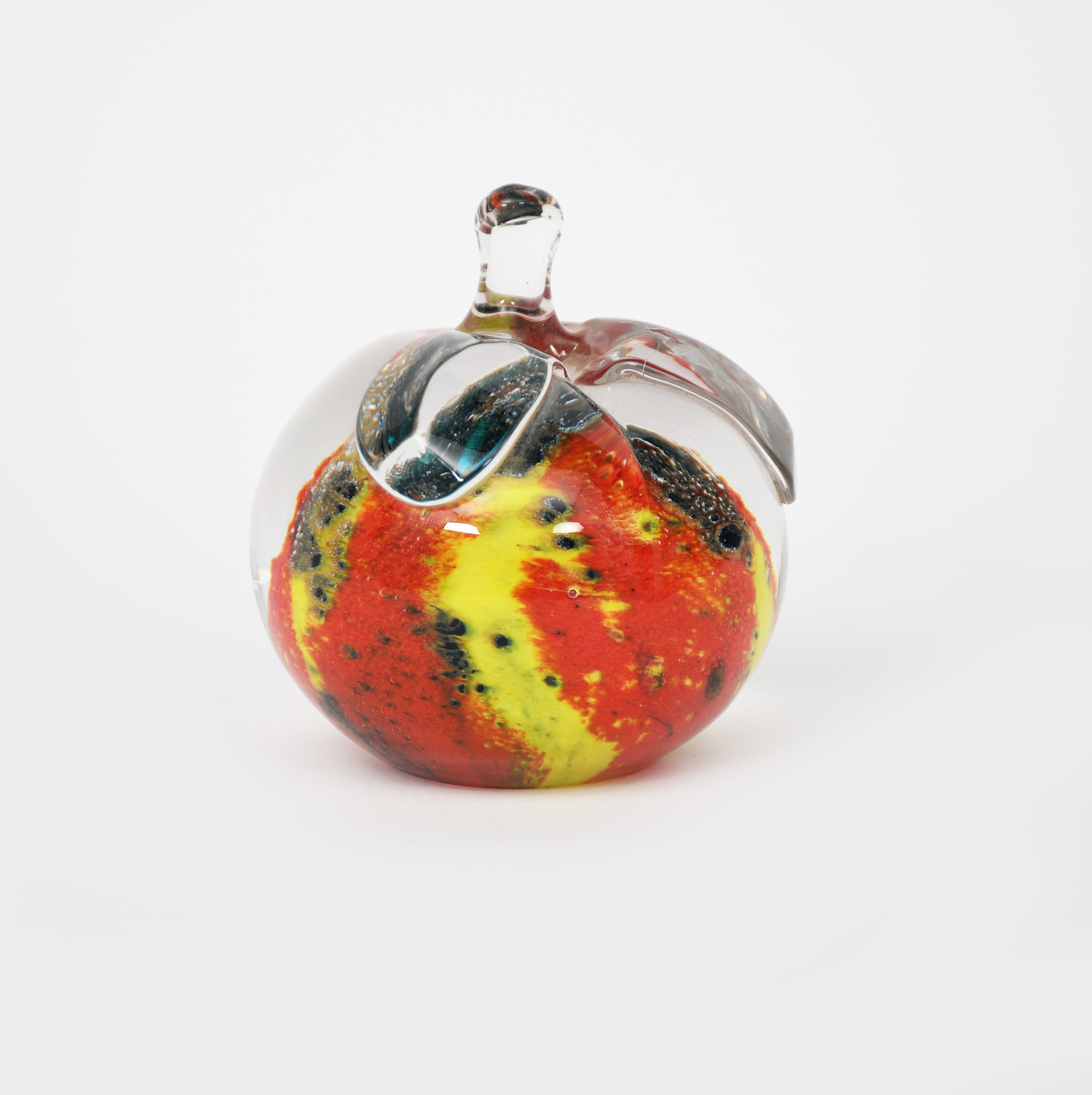 A glass Apple paperweight designed by John Lyndon for The Apple Boutique