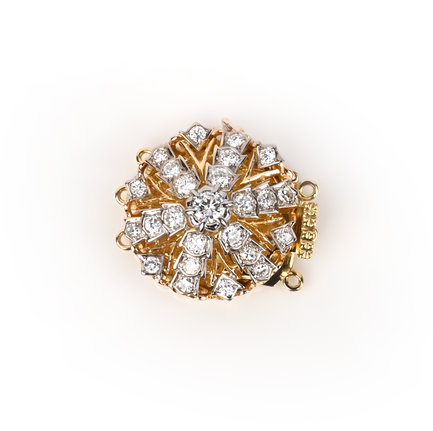 A diamond-set gold cluster clasp, set with graduated round brilliant-cut diamonds in yellow gold, 2cm wide