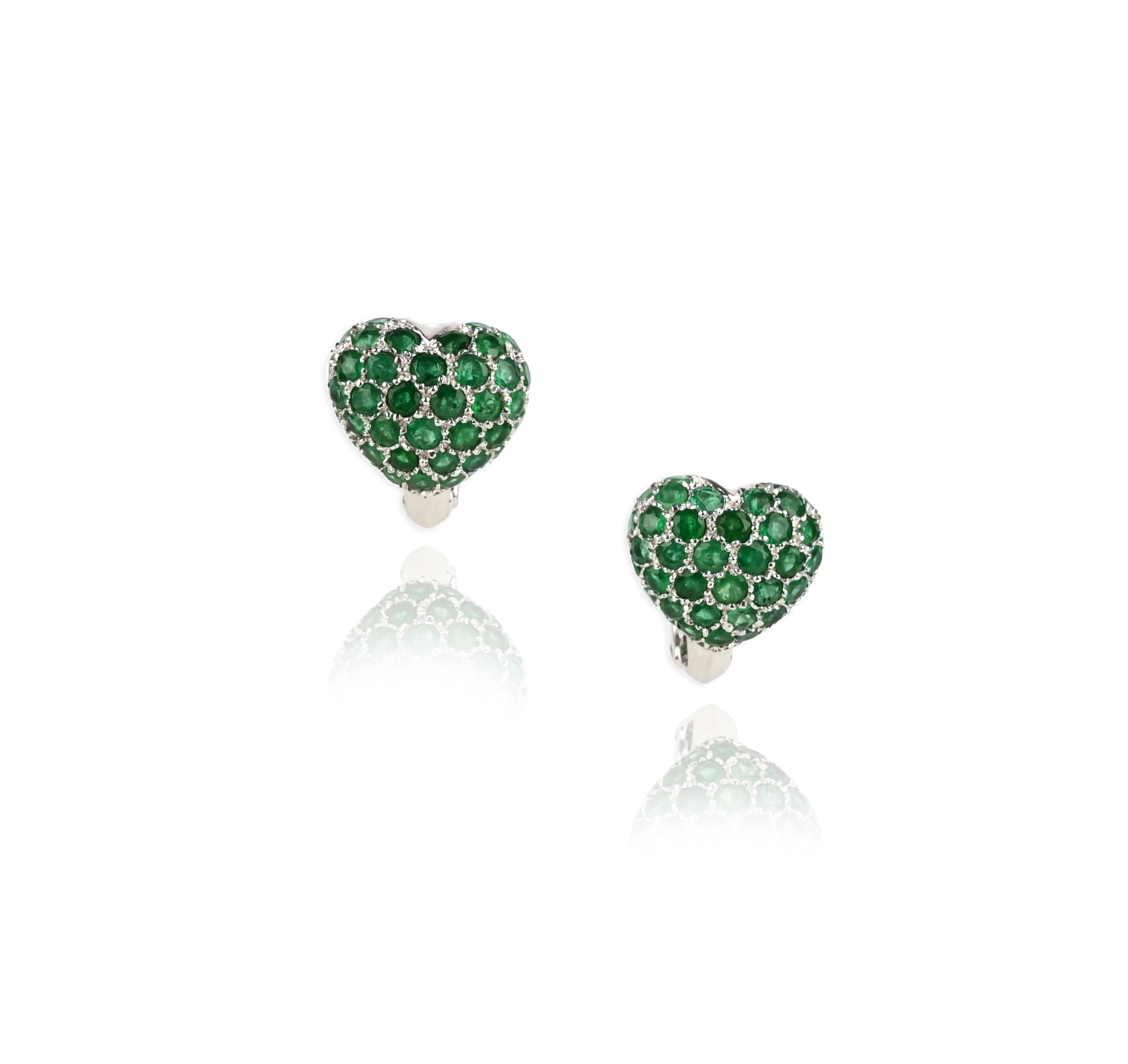 A pair of emerald heart-shaped stud earrings, pave-set in white gold, 12mm wide