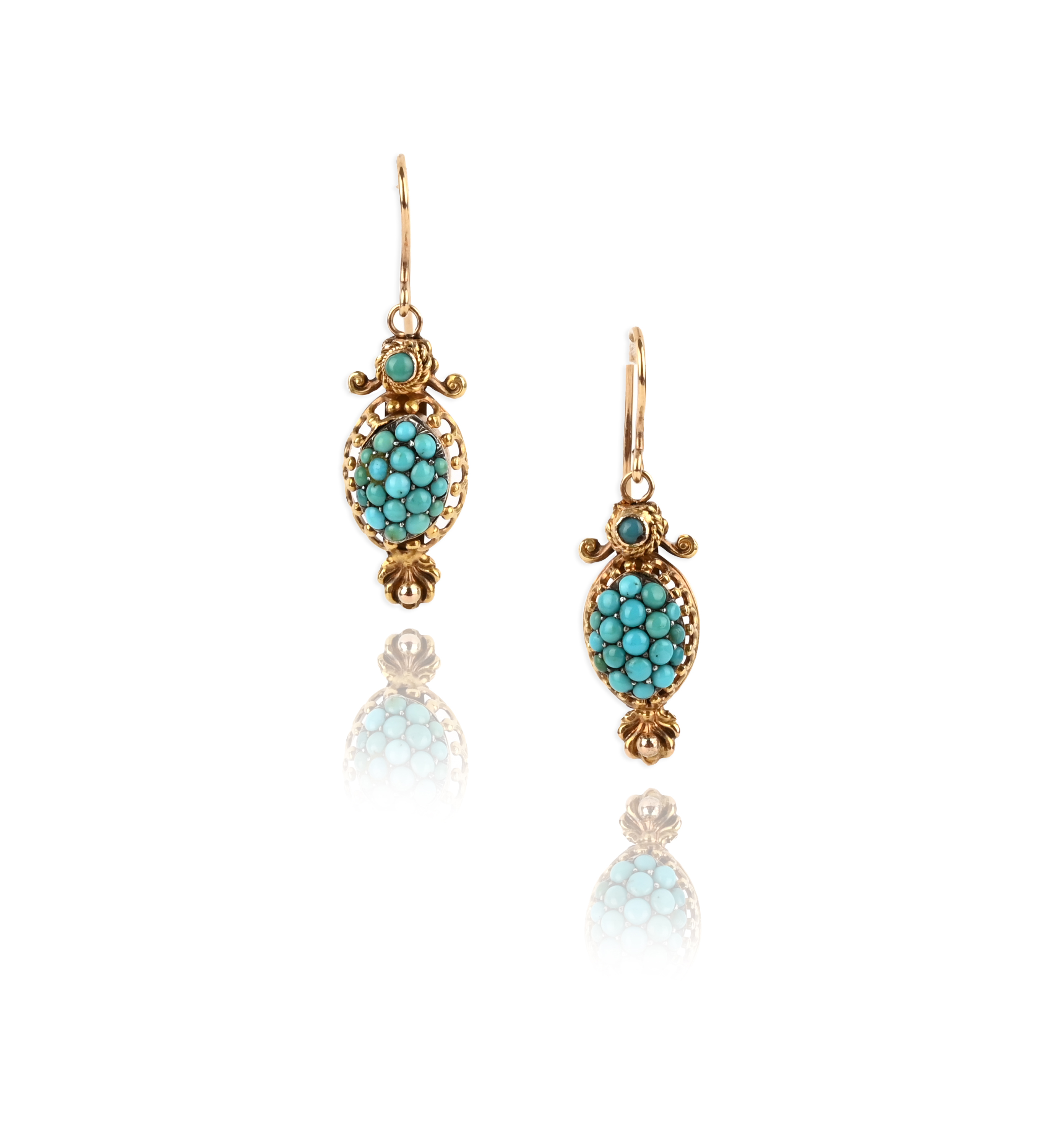 A pair of Victorian turquoise drop earrings, set in yellow gold, 3cm high including hooks