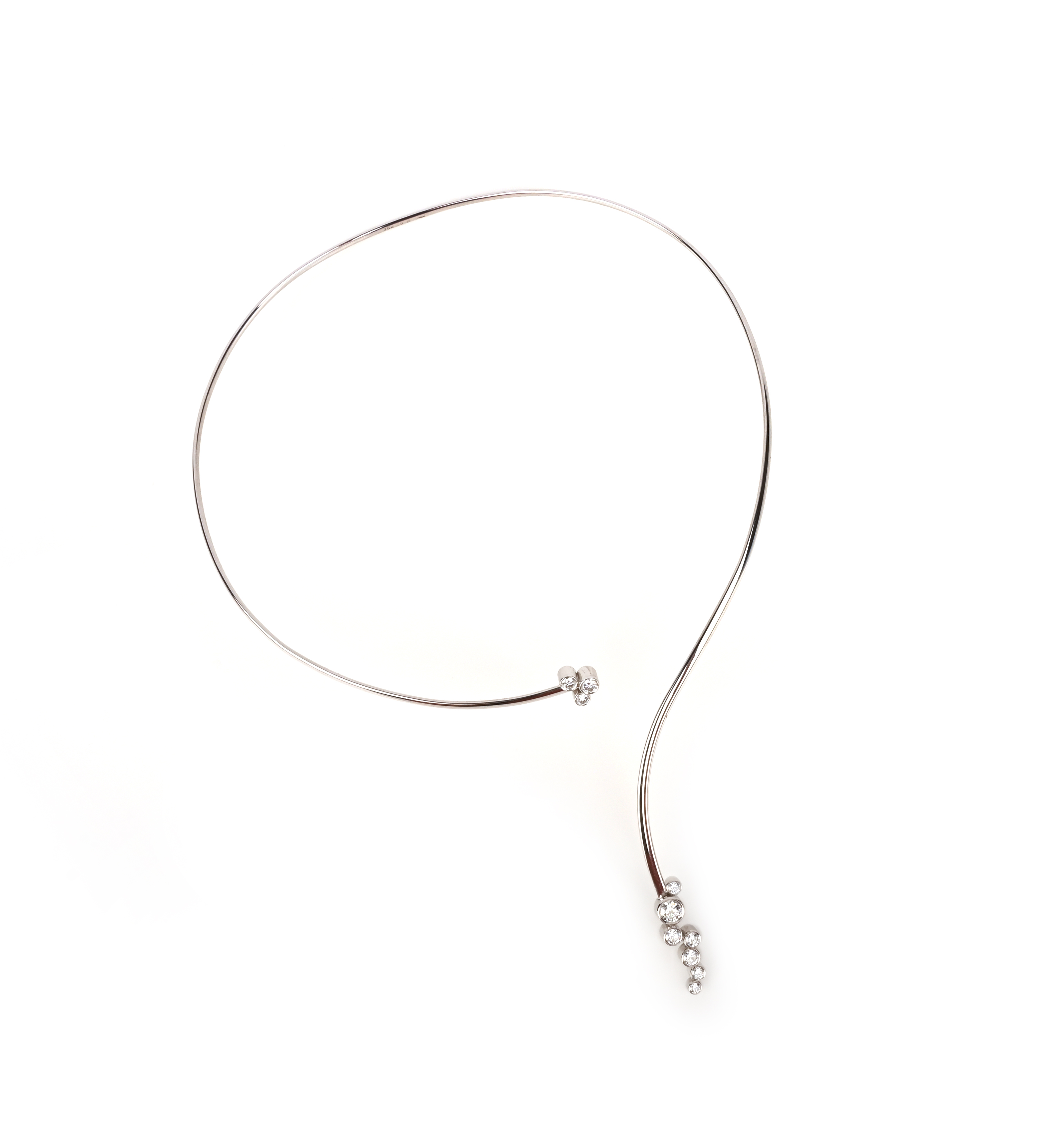 Georg Jensen, a diamond-set collar necklace, the terminals set with a cascade and a trefoil of graduated round brilliant-cut diamonds in white gold, case