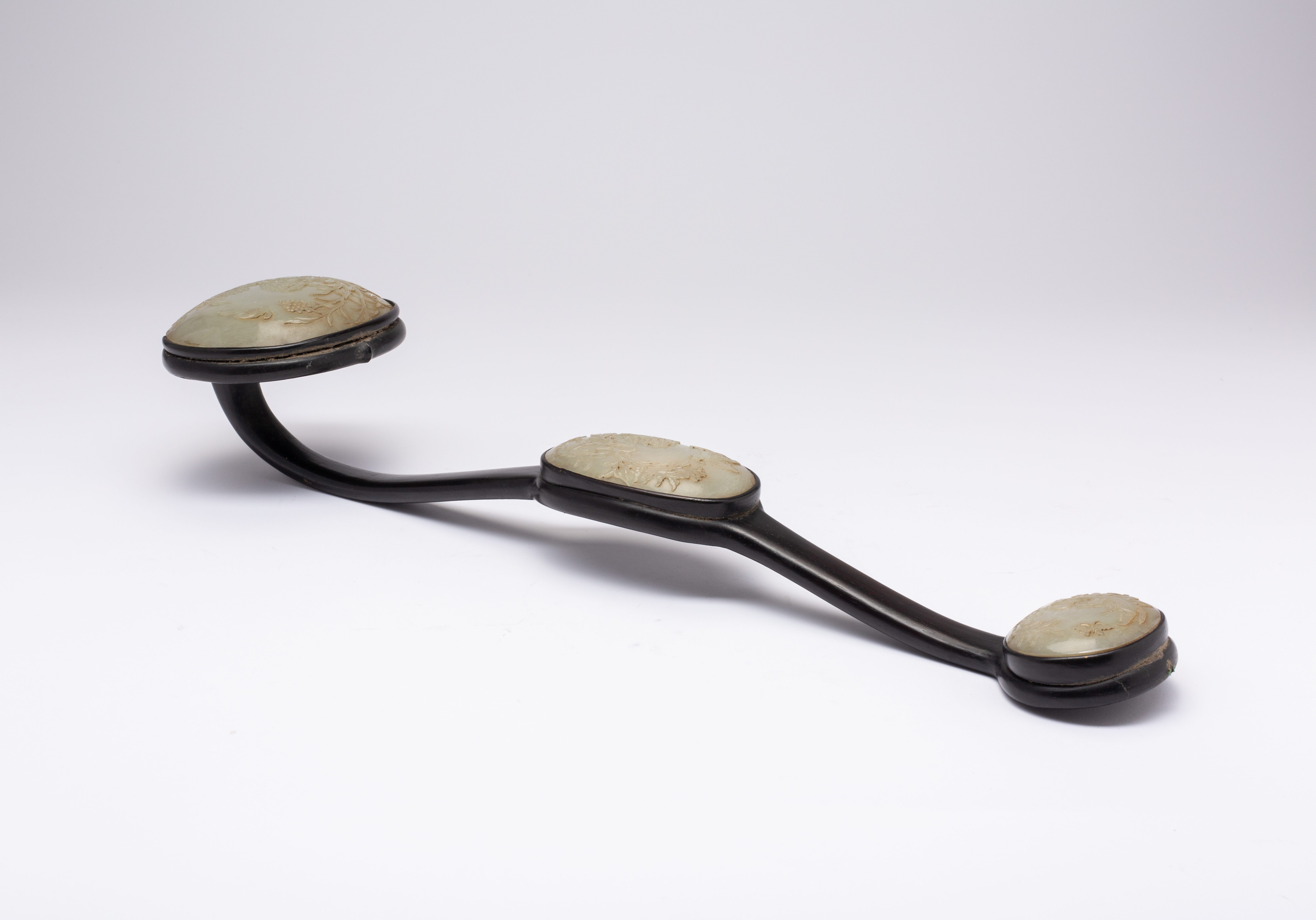 A CHINESE HARDWOOD AND PALE CELADON JADE RUYI SCEPTRE