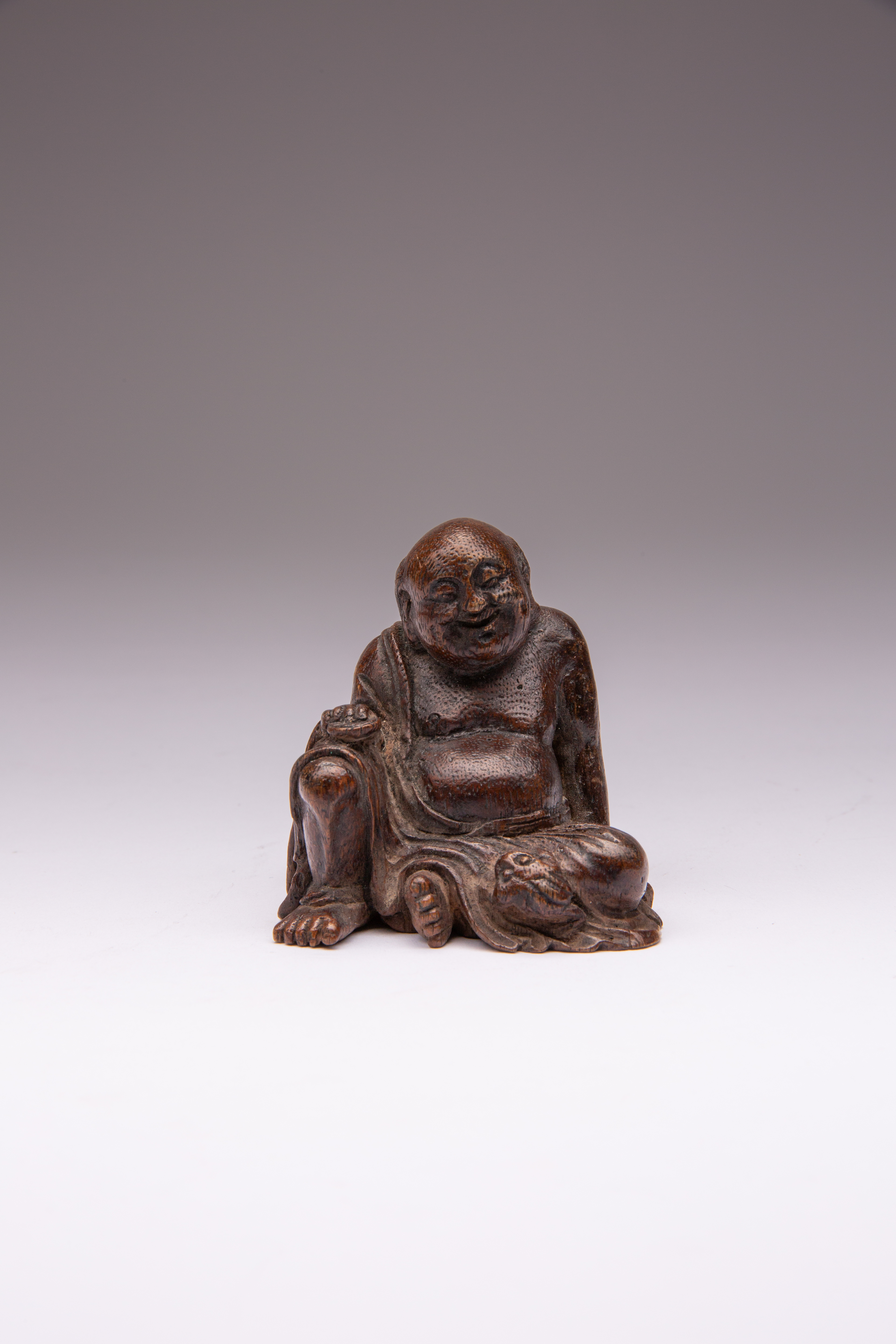 A CHINESE CARVED WOOD FIGURE OF LIU HAI