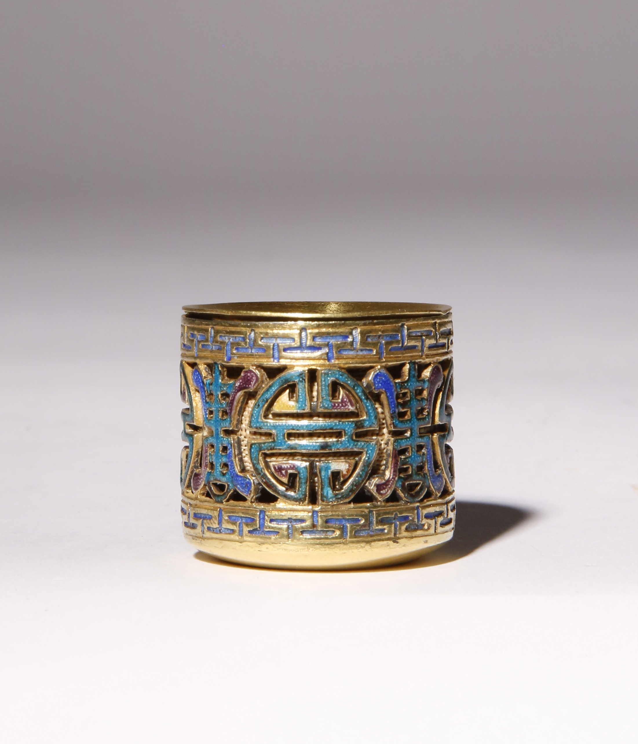 A CHINESE CHAMPLEVE ENAMEL ARCHER'S RING
