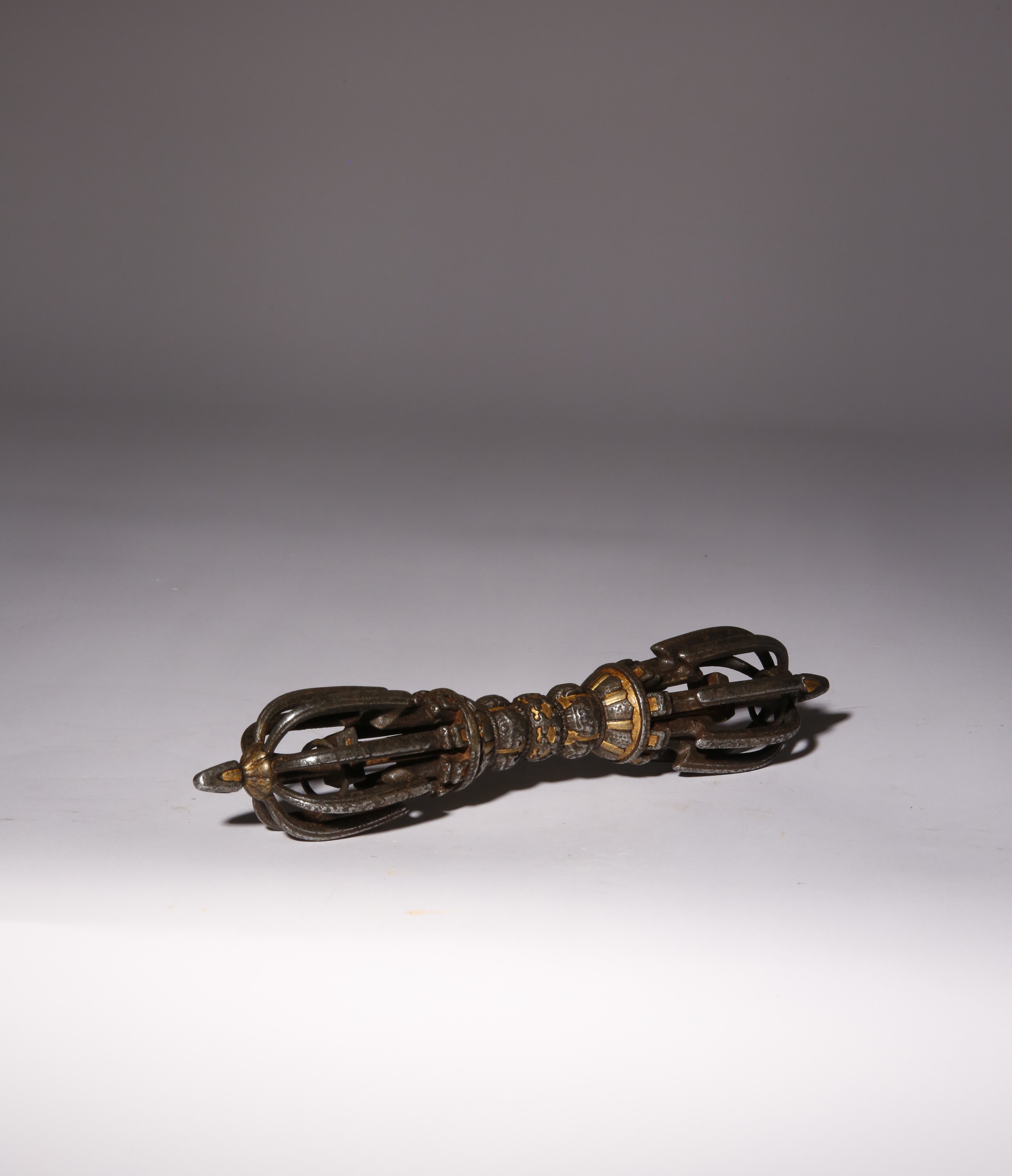 A HIMALAYAN PARCEL-GILT IRON VAJRA