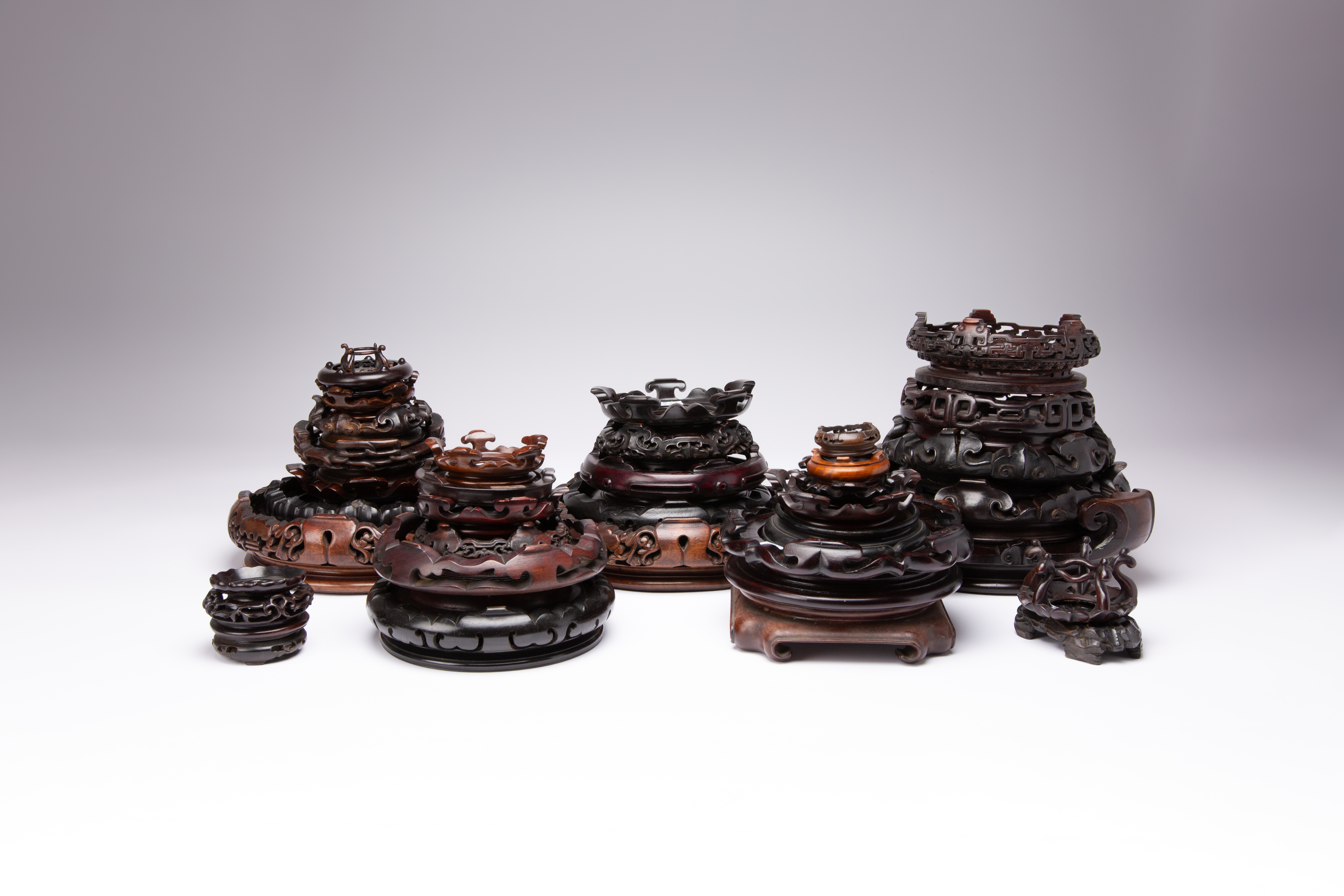 Of various shapes and sizes, decorated with floral designs, ruyi-heads, foliage, scrolls and other designs, 30cm max. (35)