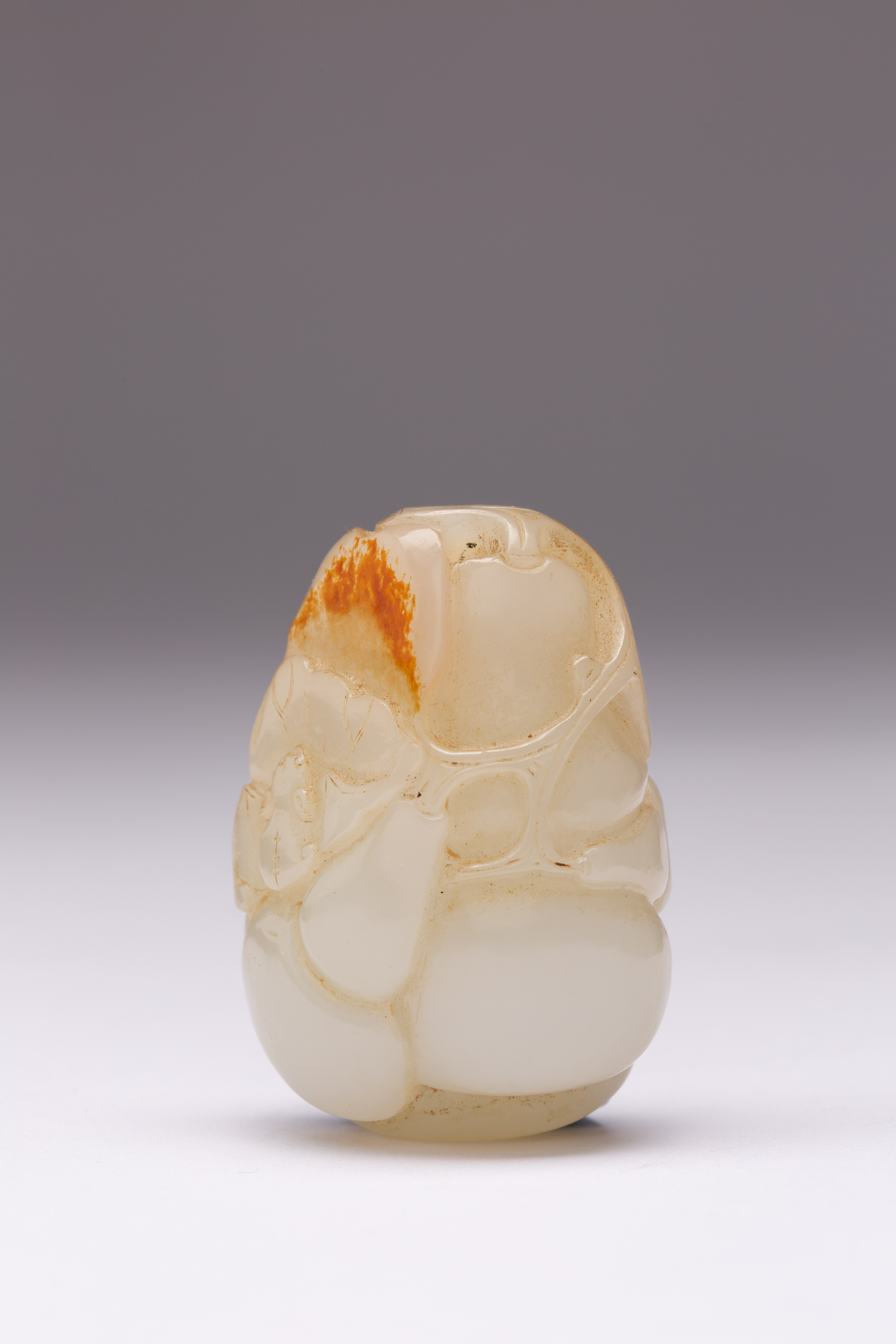 Carved with bottle gourds, a single leaf and a bat, 5cm.