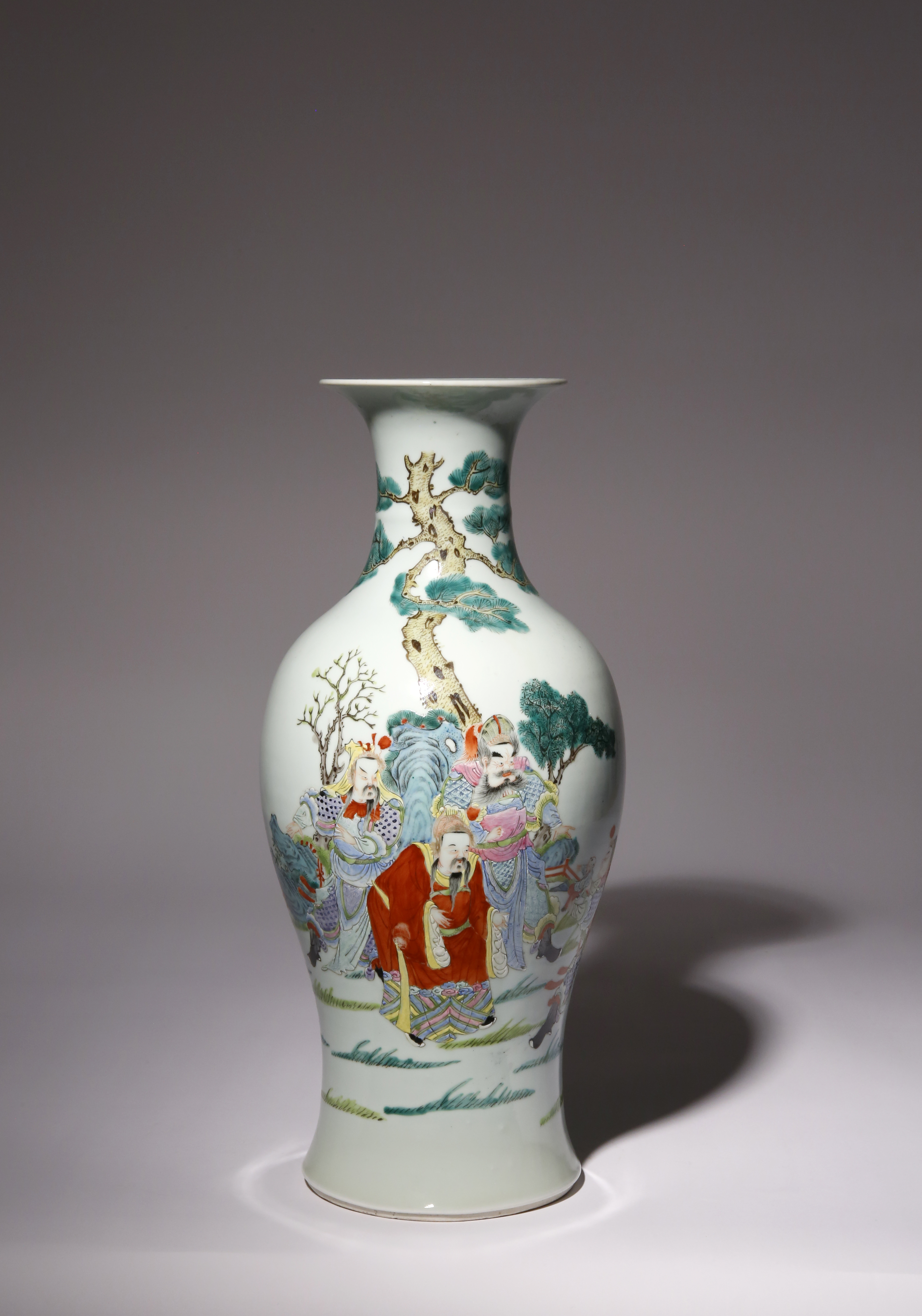 A CHINESE FAMILLE ROSE 'ROMANCE OF THE THREE KINGDOMS' BALUSTER VASE