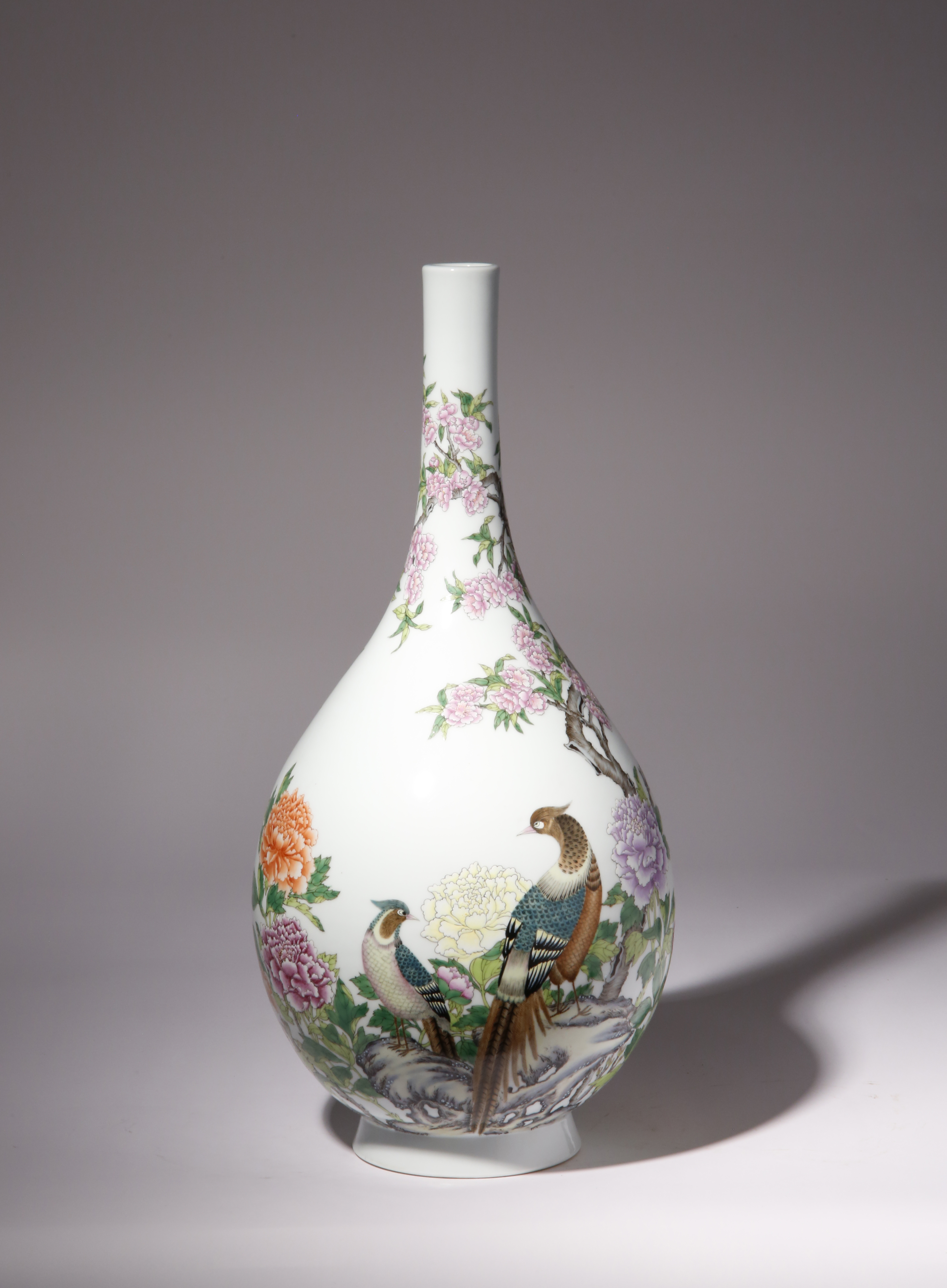 A CHINESE FAMILLE ROSE PEAR-SHAPED VASE