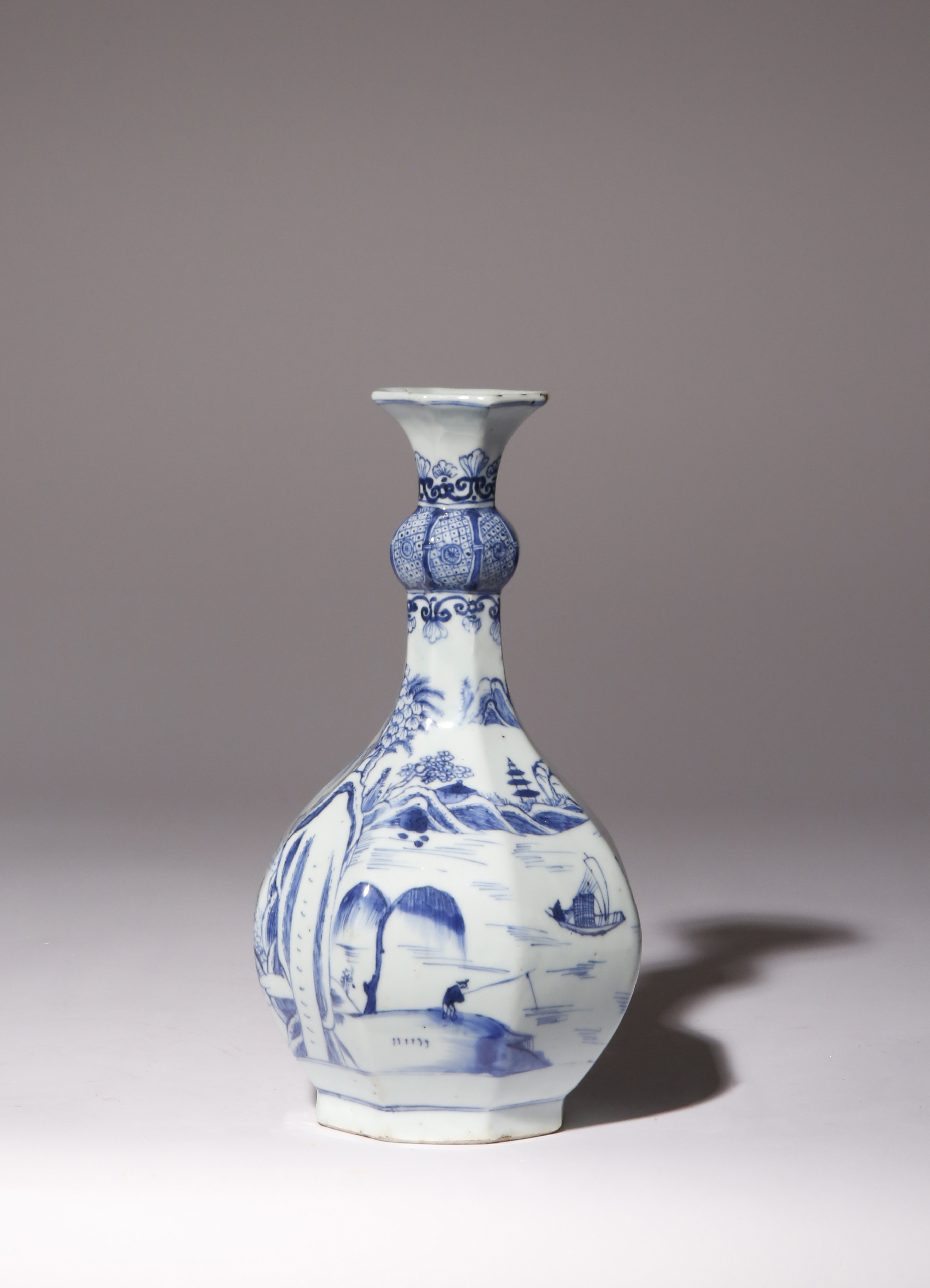 A CHINESE BLUE AND WHITE OCTAGONAL BOTTLE VASE