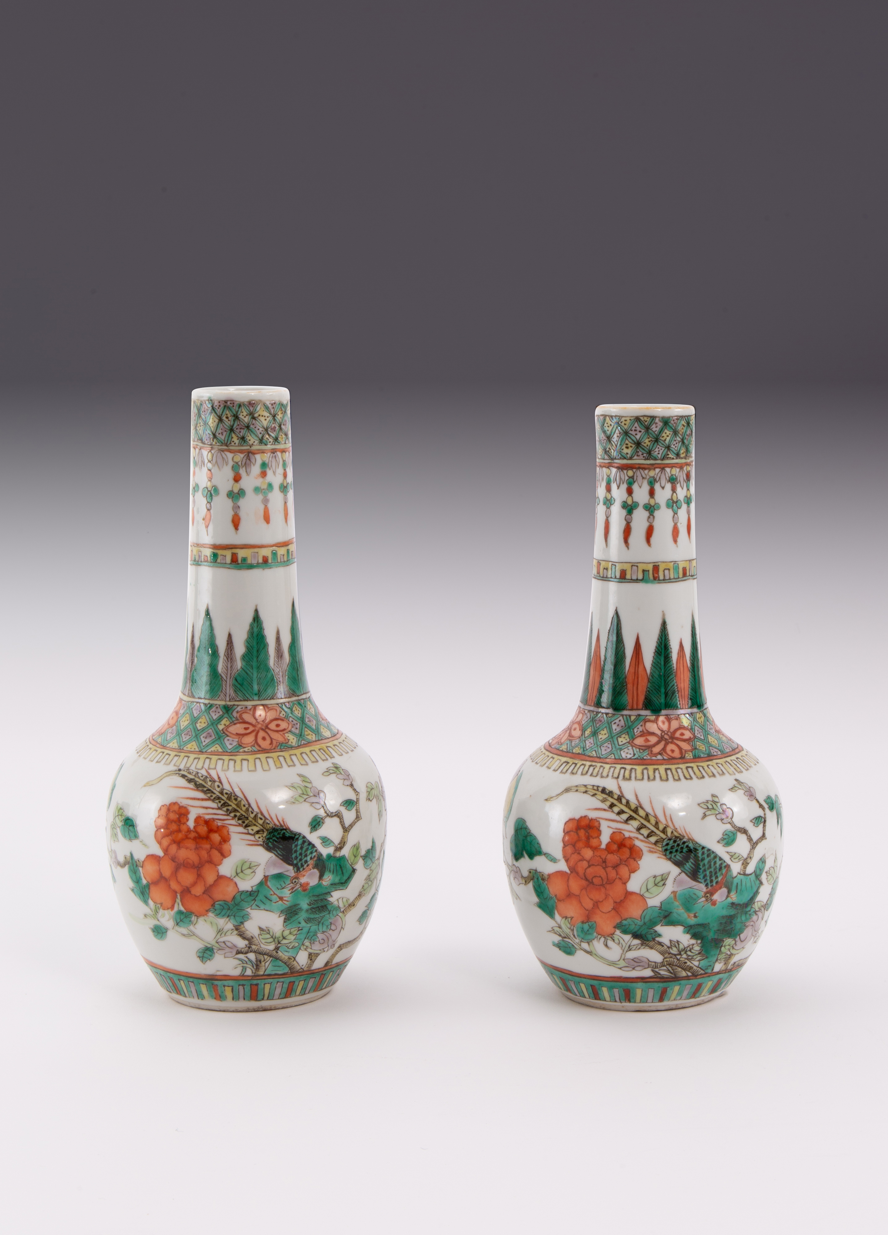 A NEAR PAIR OF CHINESE FAMILLE VERTE BOTTLE VASES