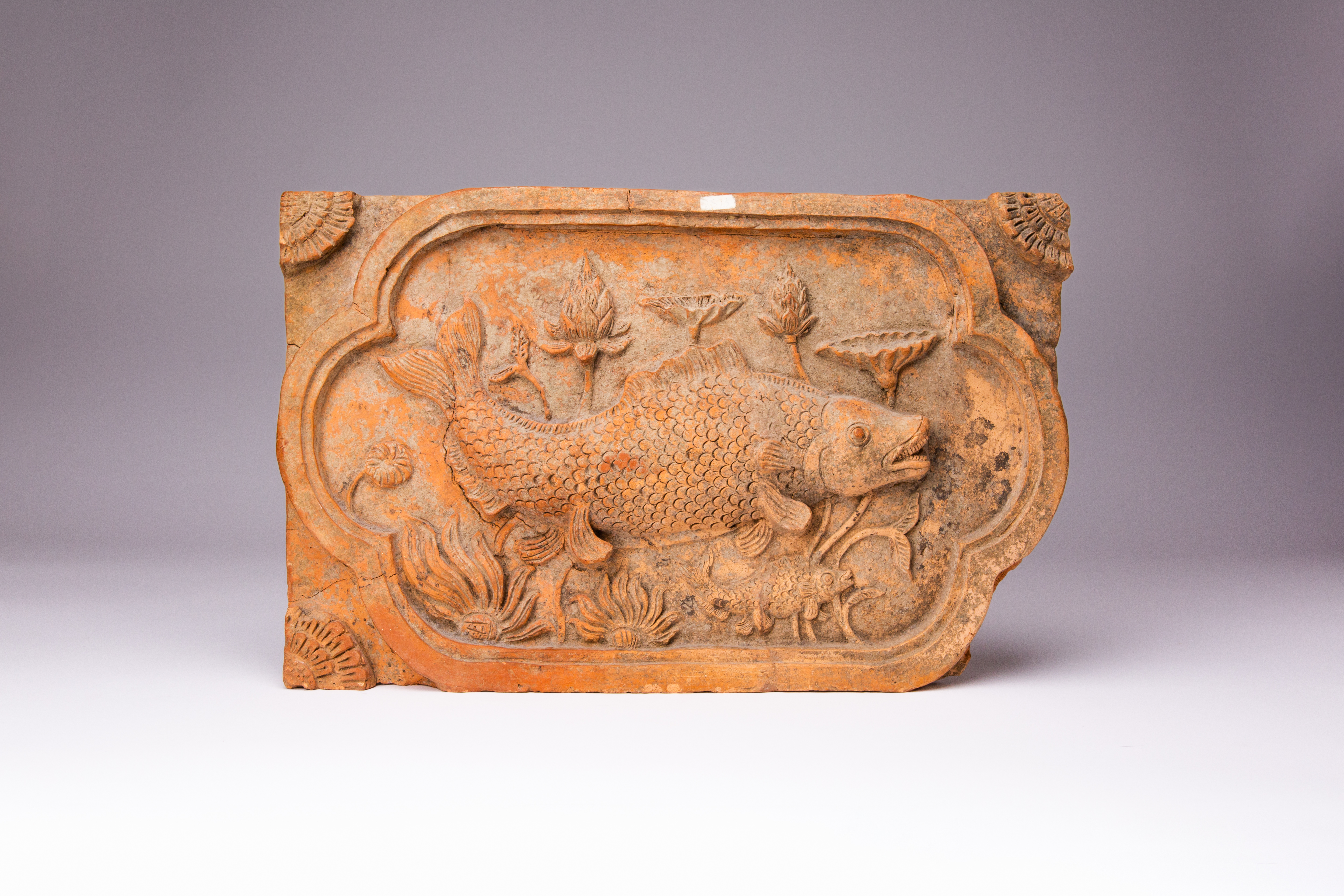 A CHINESE RECTANGULAR TERRACOTTA PLAQUE