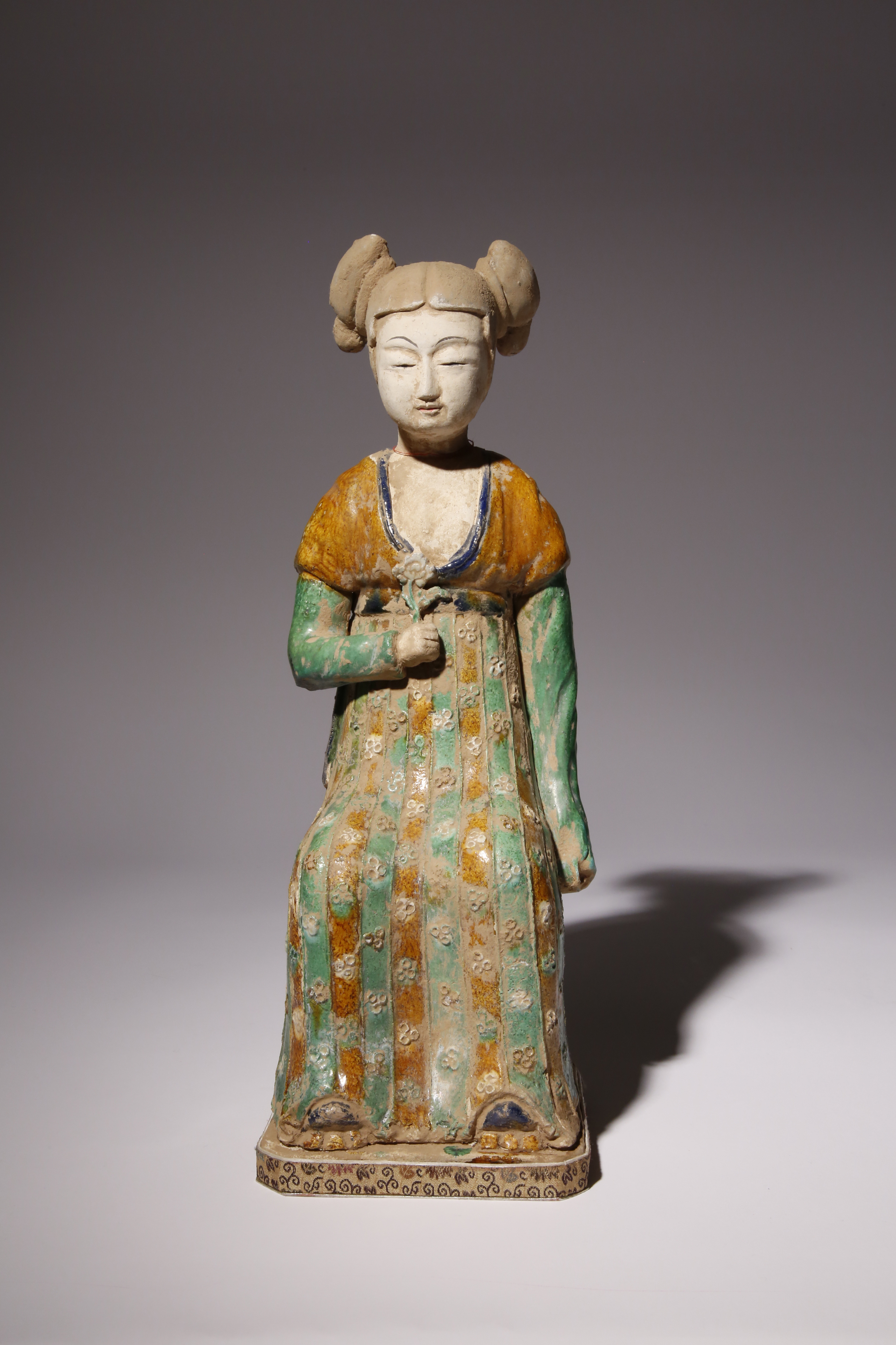 A CHINESE SANCAI POTTERY FIGURE OF A SEATED COURT LADY