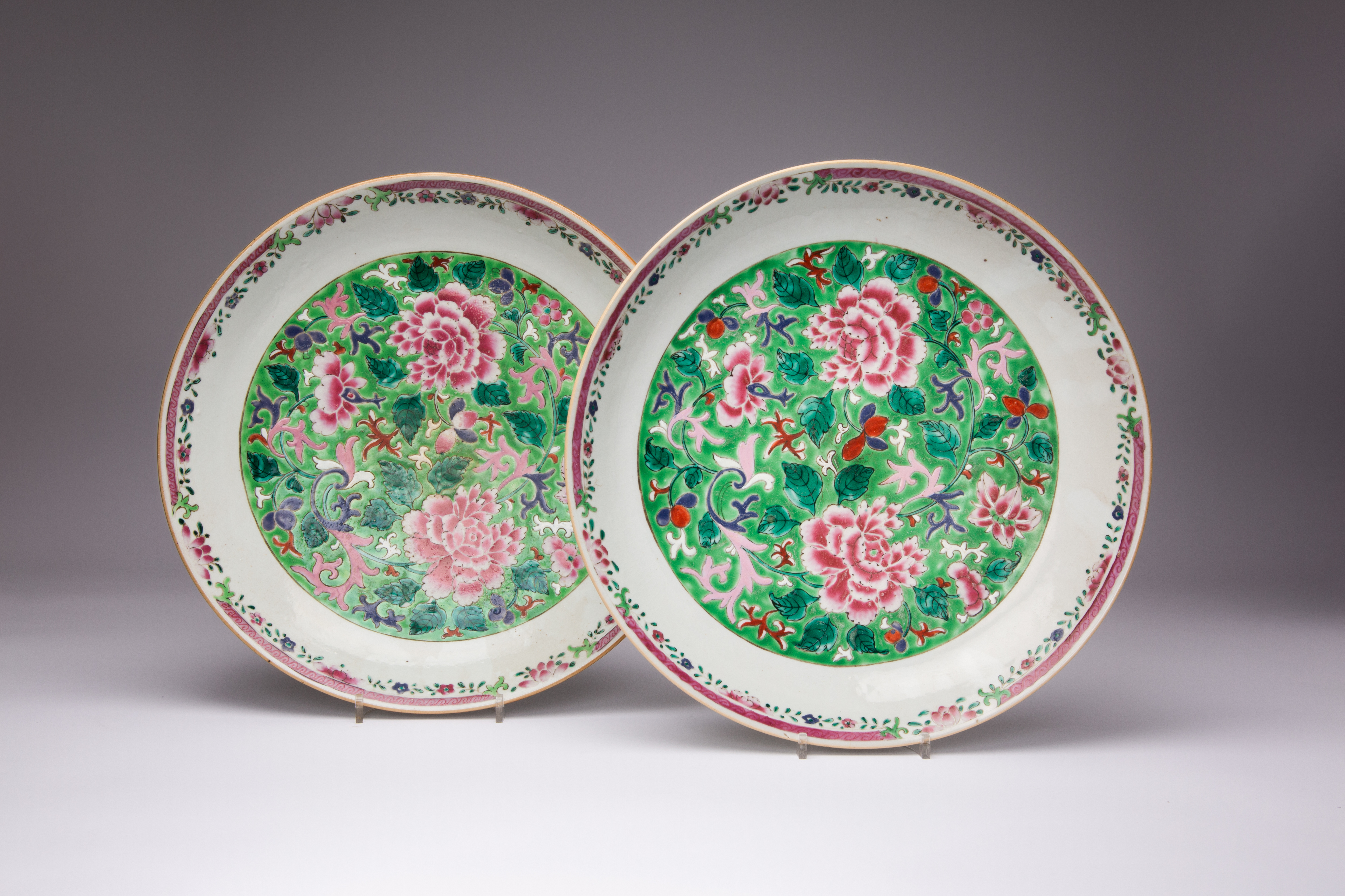 A LARGE PAIR OF CHINESE FAMILLE ROSE DISHES