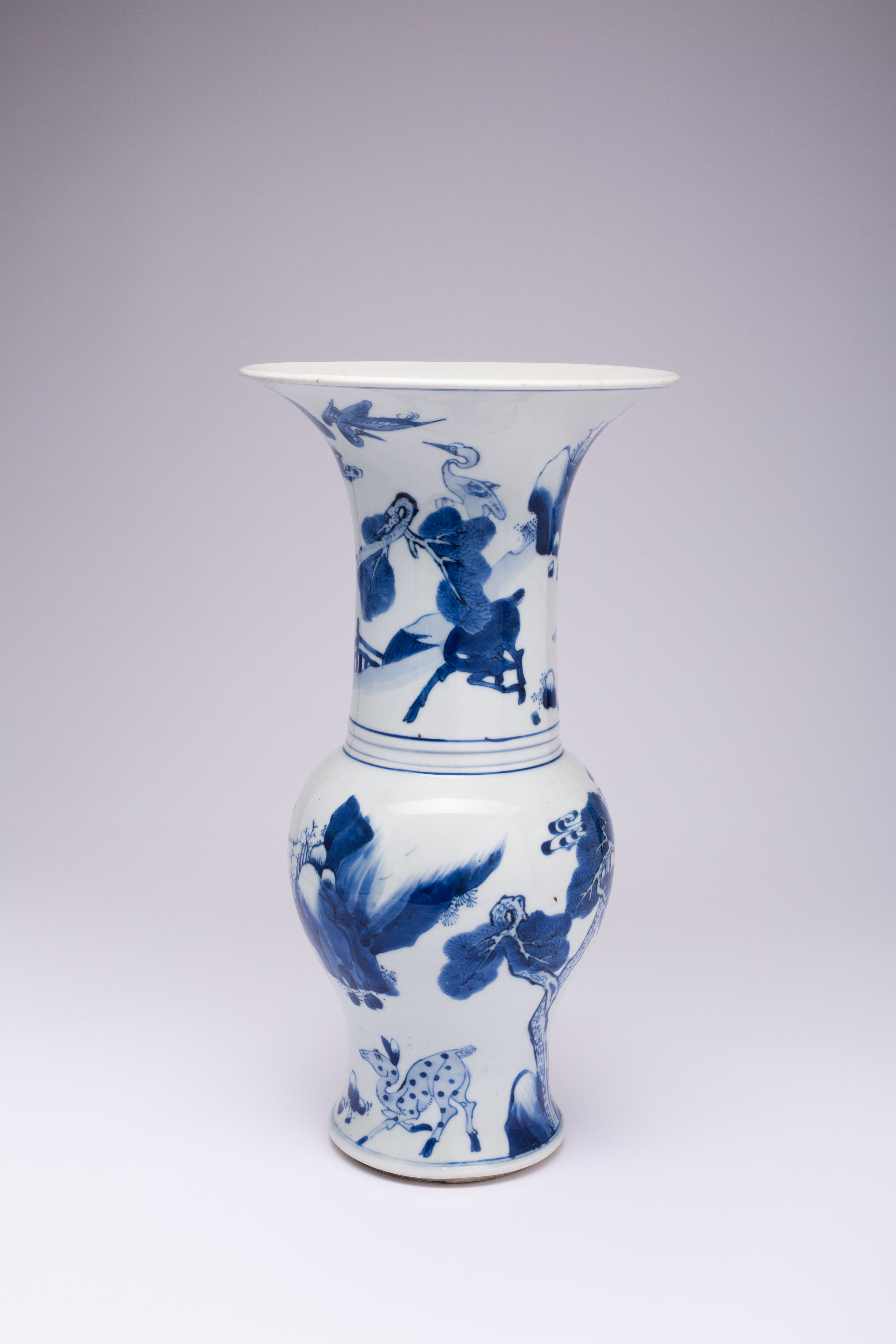 A CHINESE BLUE AND WHITE 'DEER AND CRANE' YEN YEN VASE