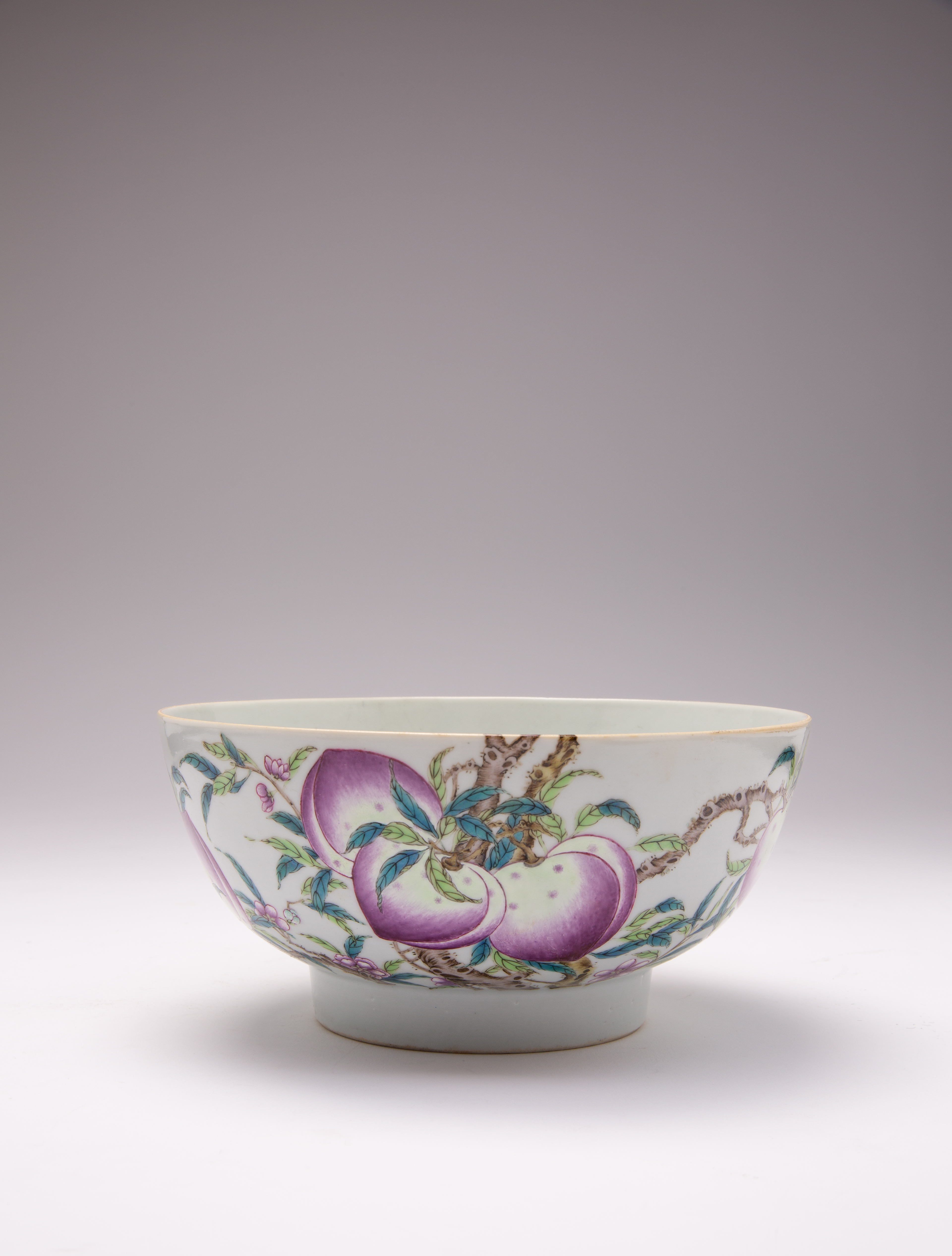 A CHINESE FAMILLE ROSE 'PEACHES AND BATS' BOWL