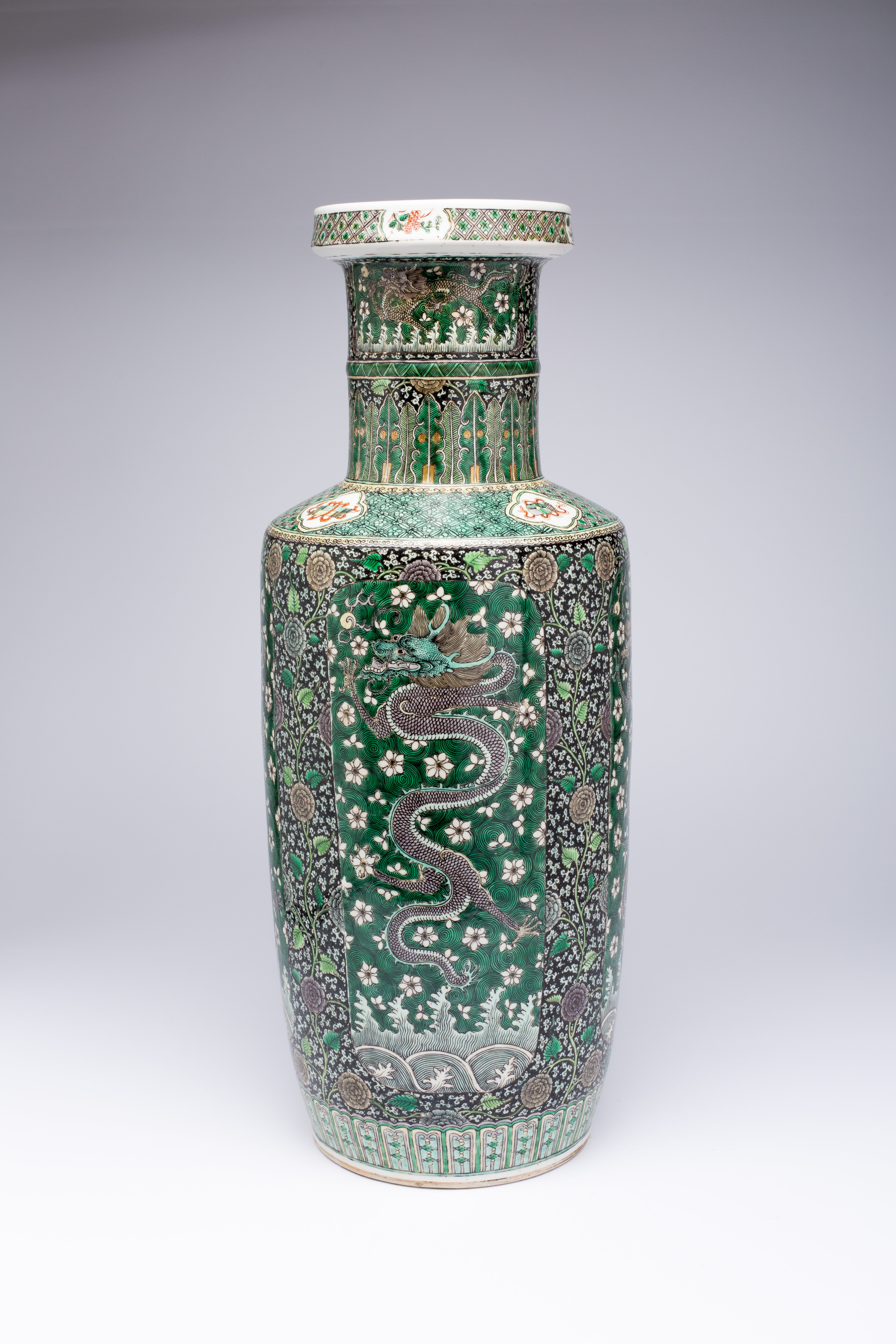 A CHINESE FAMILLE NOIRE 'DRAGON' ROULEAU VASE
