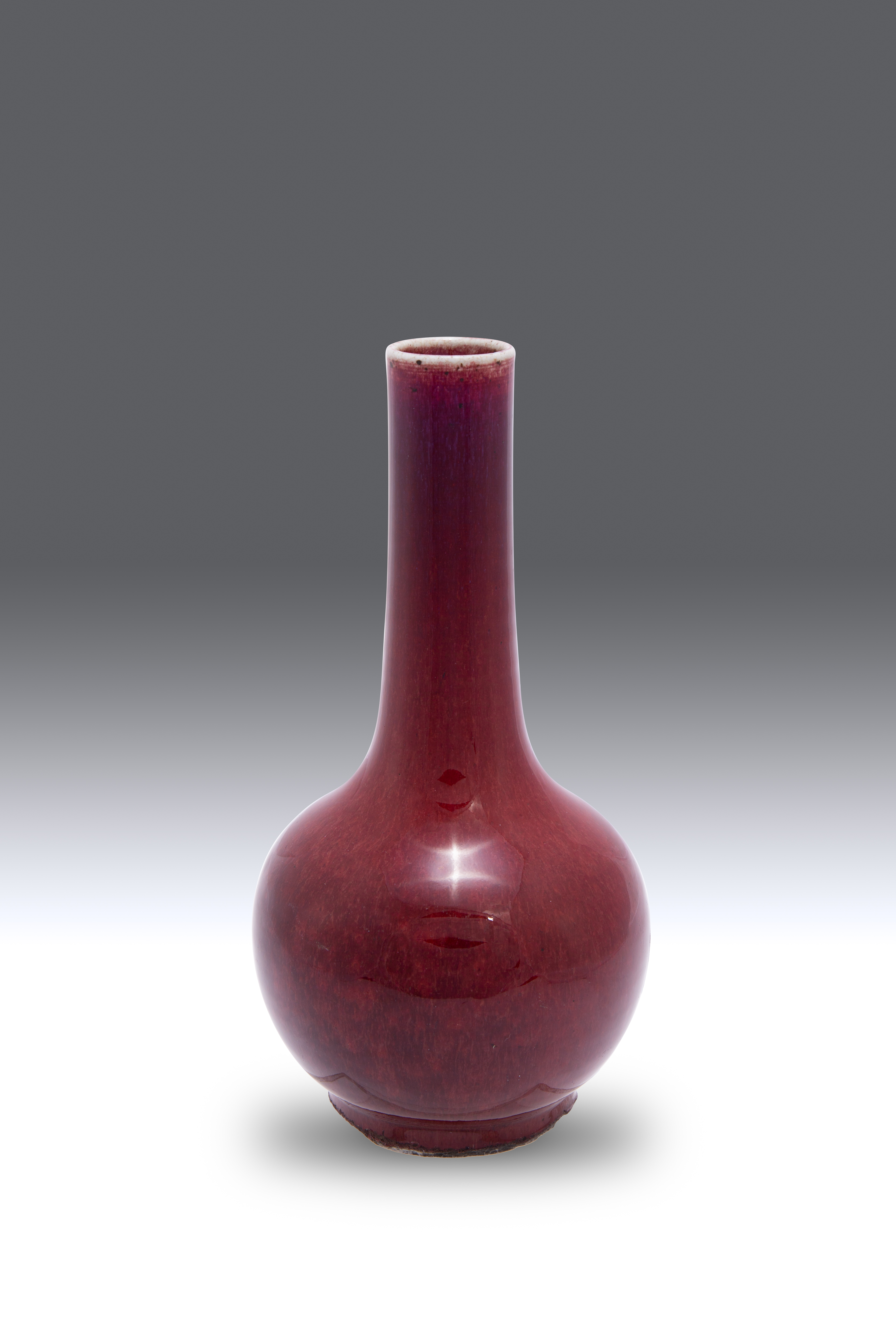 A CHINESE FLAMBE GLAZED BOTTLE VASE