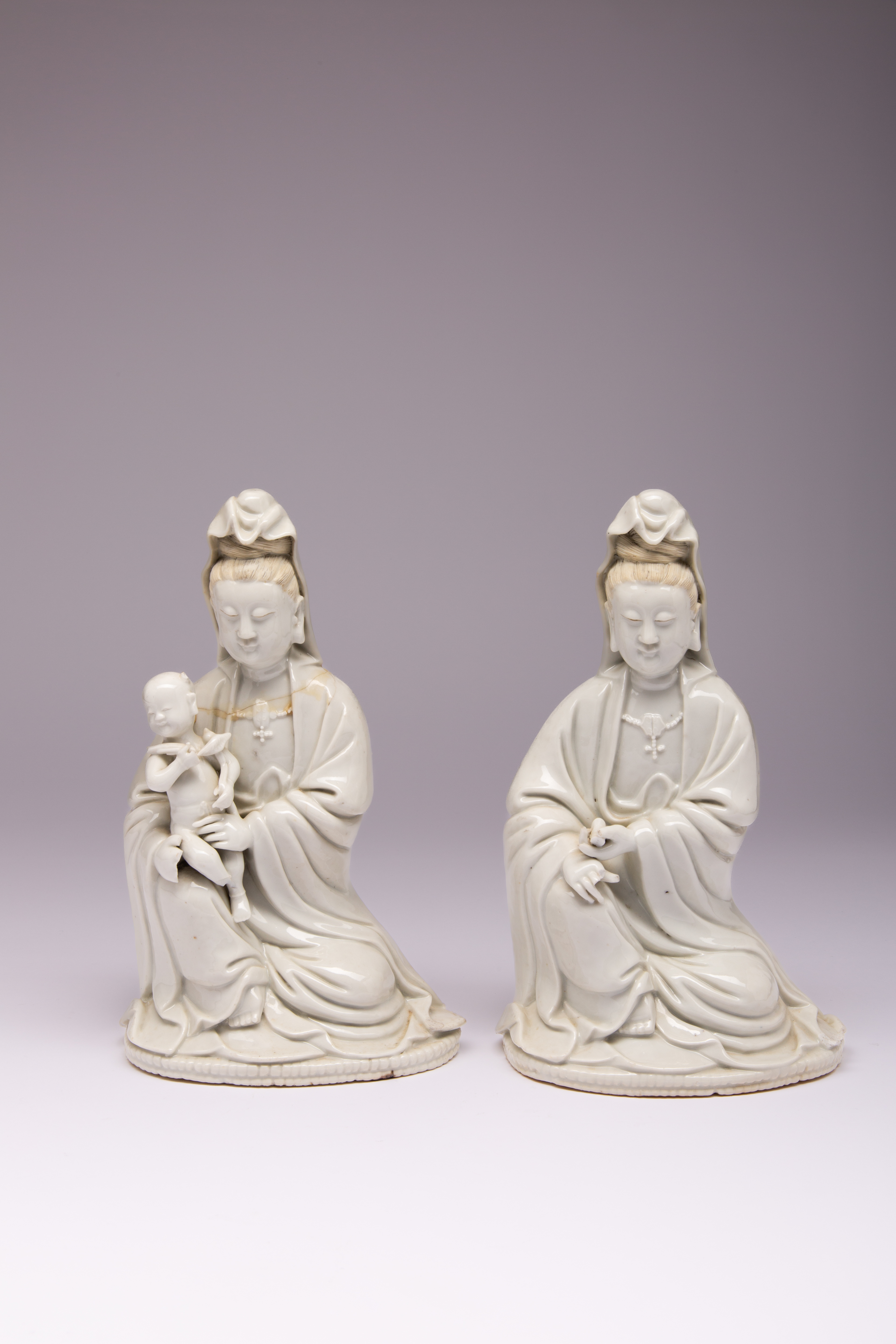 TWO CHINESE BLANC DE CHINE SEATED FIGURES OF GUANYIN