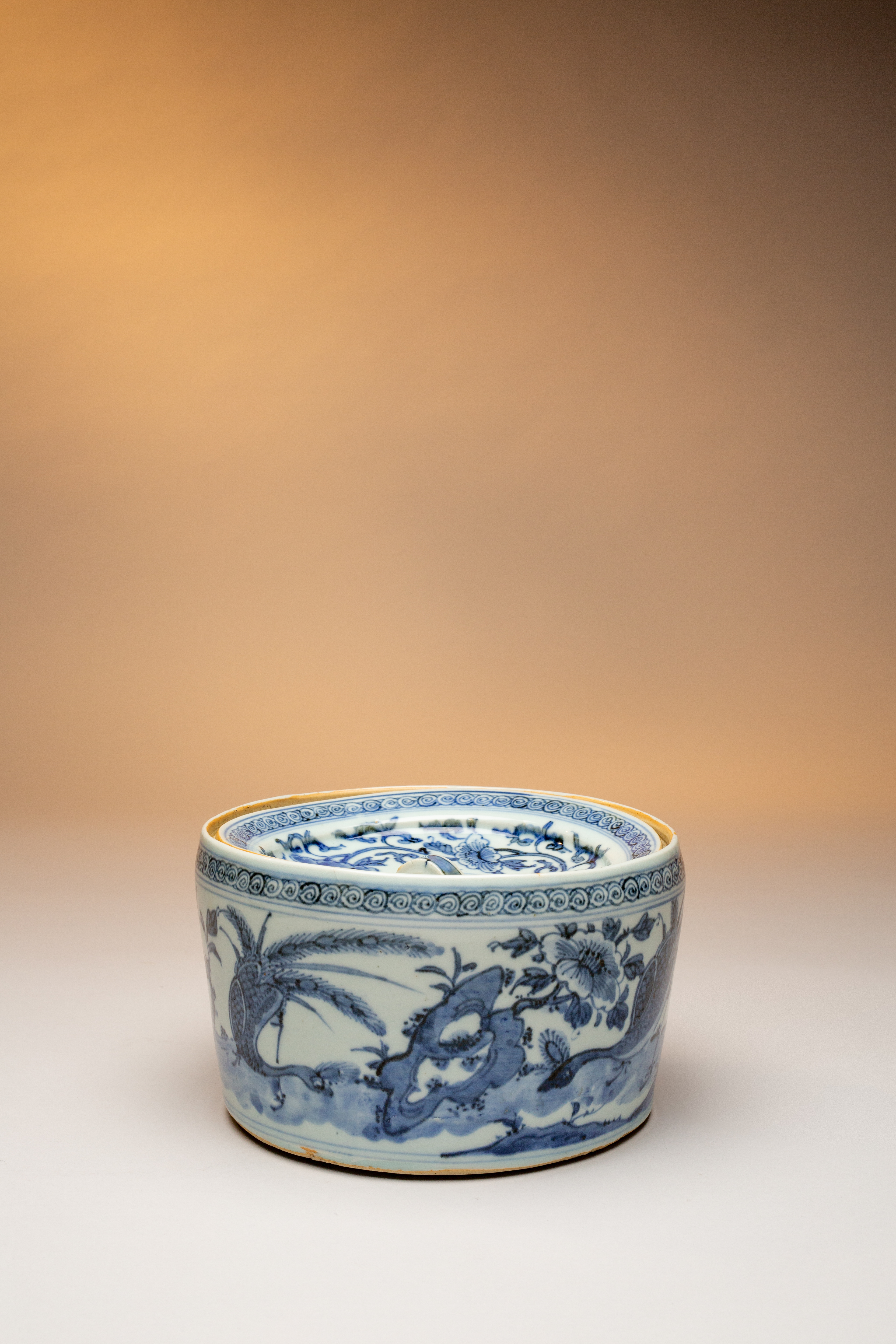 A RARE CHINESE KO-SOMETSUKE MIZUSASHI (WATER JAR AND COVER)