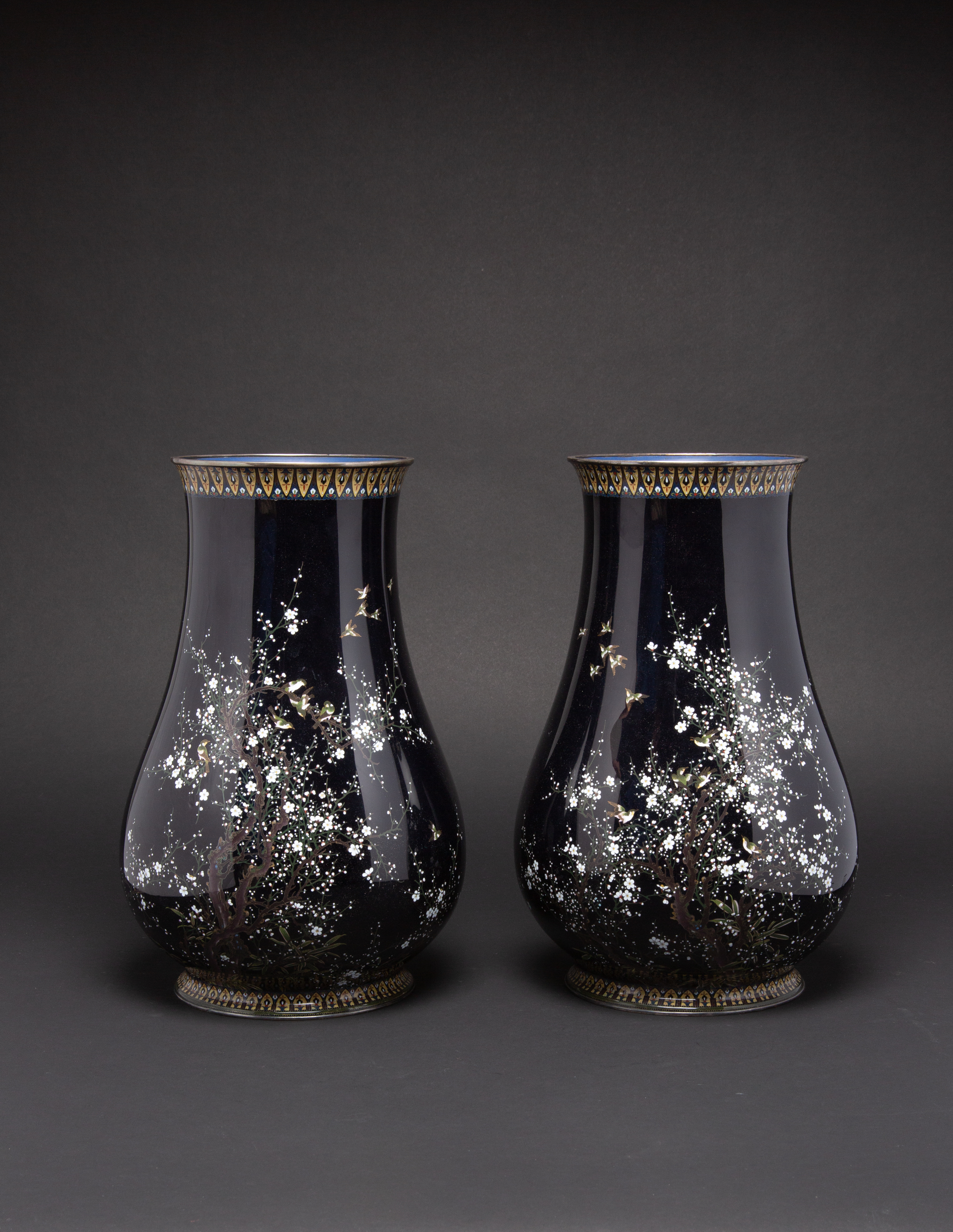 A LARGE PAIR OF JAPANESE CLOISONNE VASES
