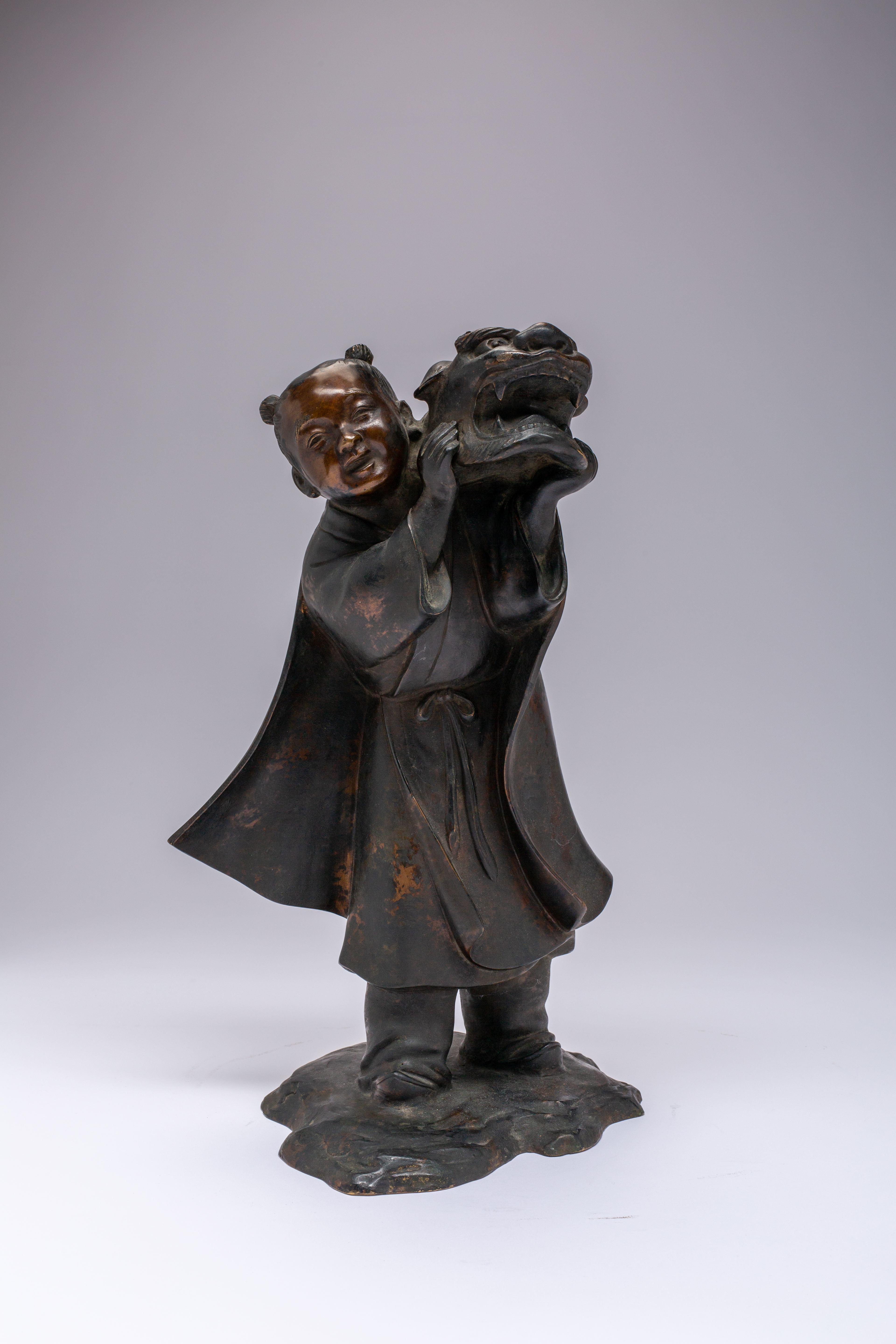 A TALL JAPANESE BRONZE OKIMONO OF A BOY