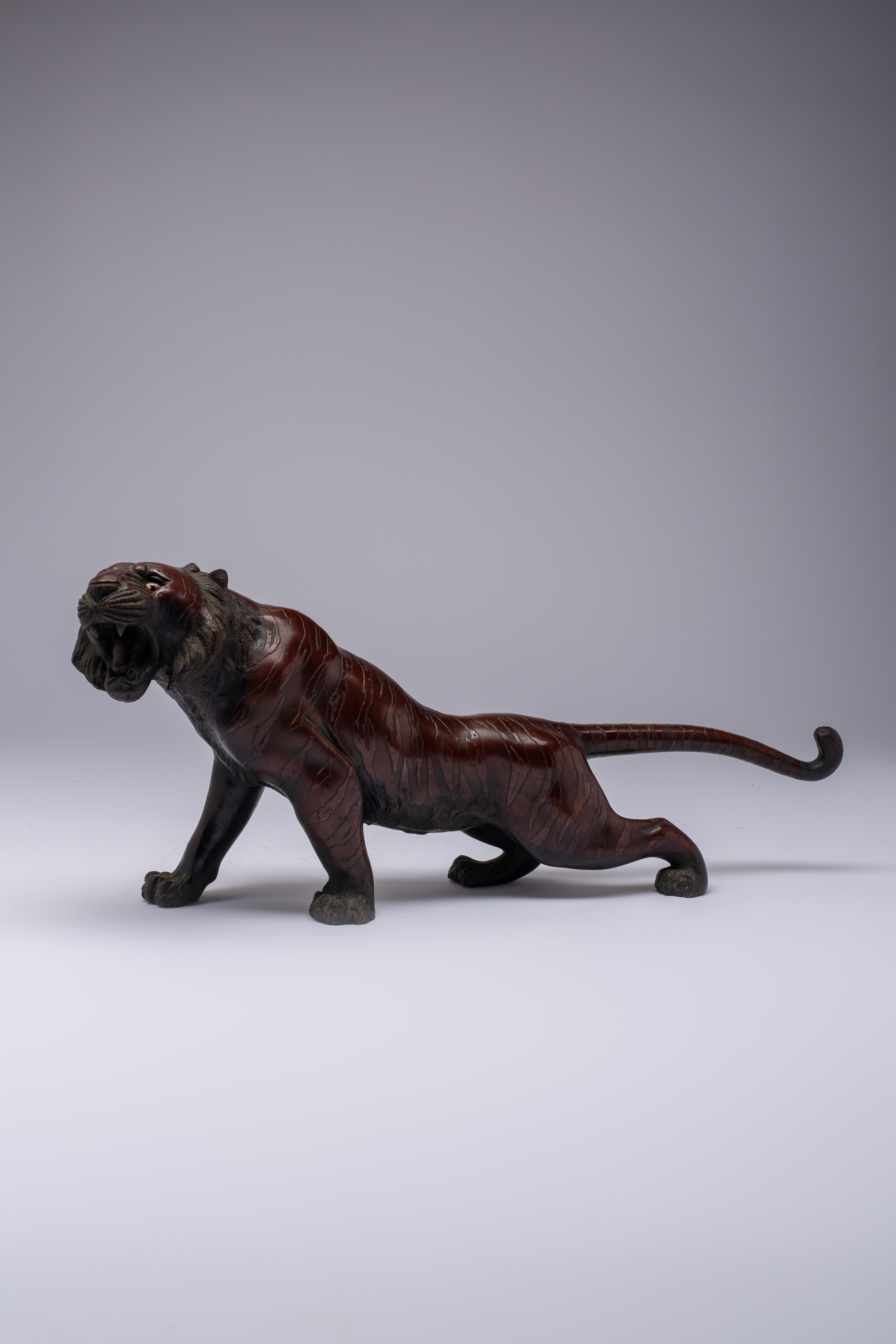 A JAPANESE BRONZE OKIMONO OF A TIGER