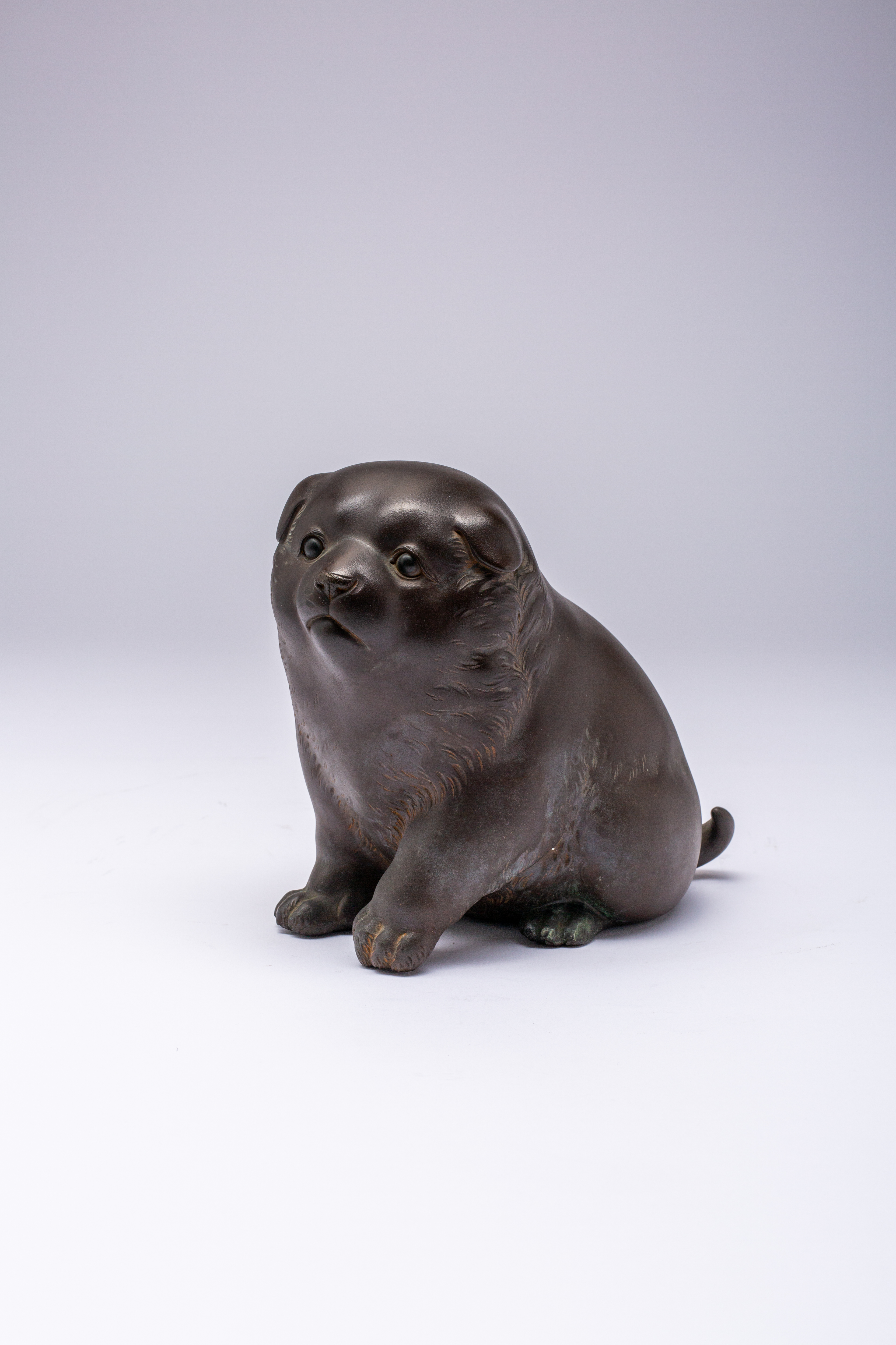 A JAPANESE BRONZE OKIMONO OF A PUPPY BY TAKAHASHI RYOUN