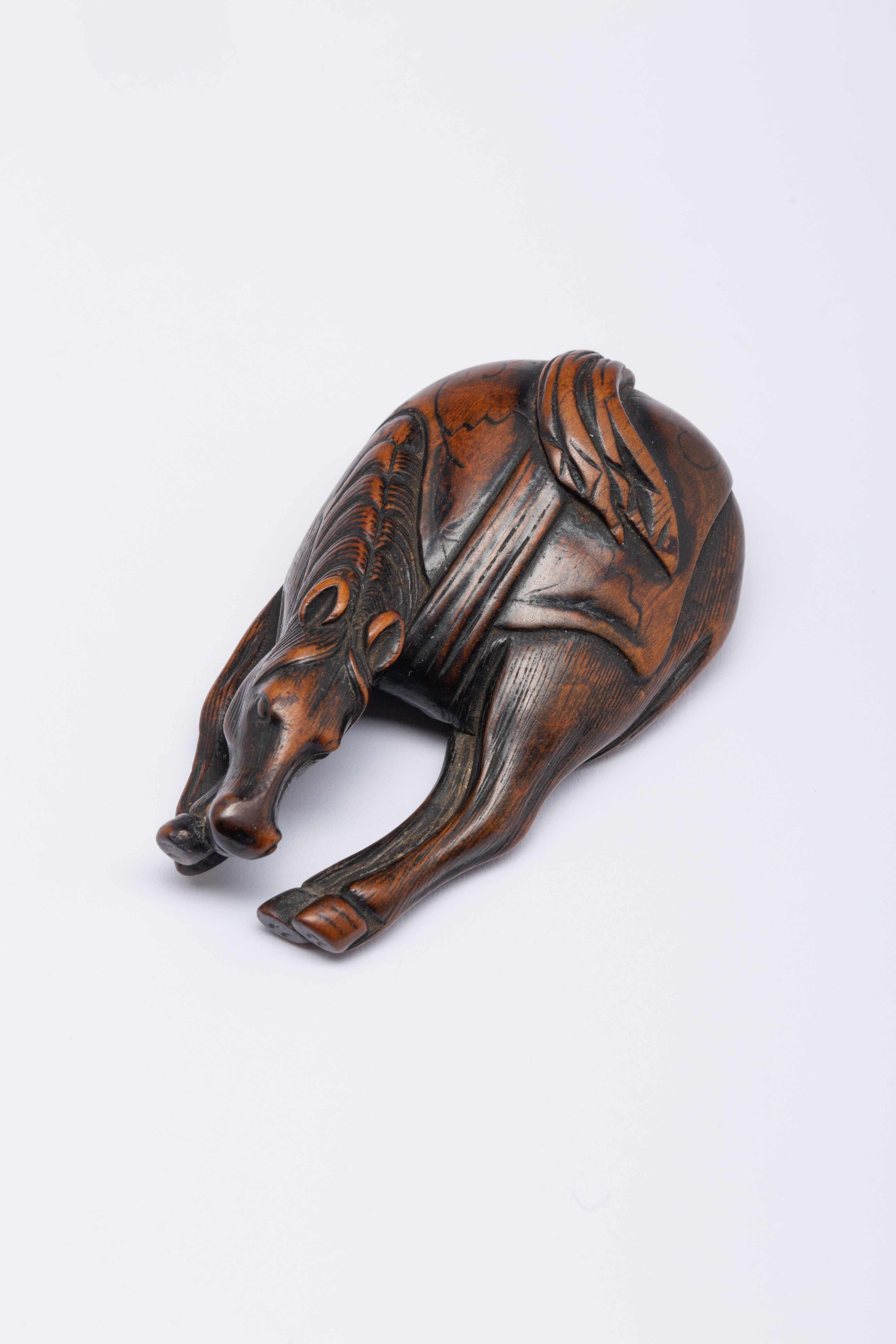 A JAPANESE BOXWOOD NETSUKE OF A HORSE