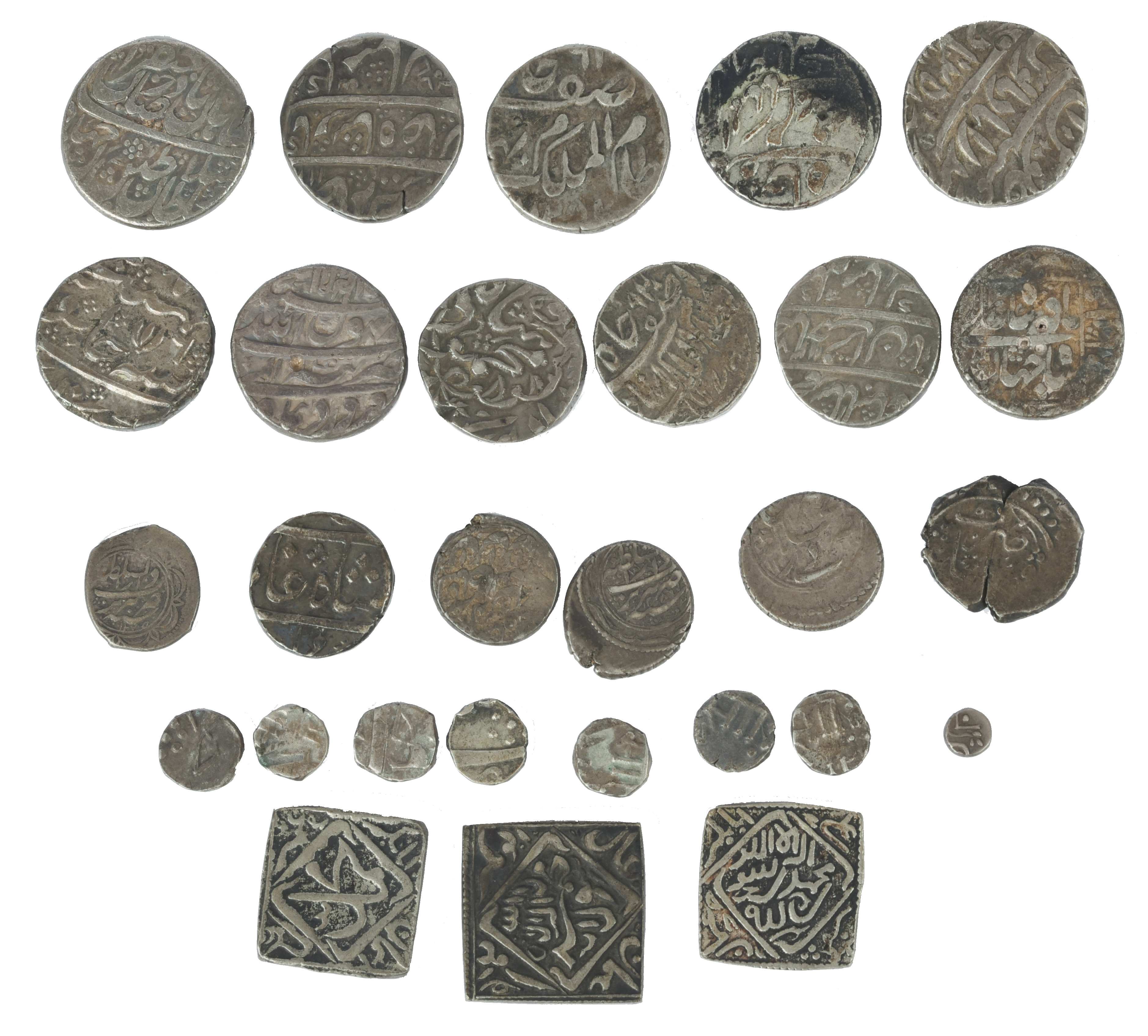 India: a small collection of rupees, fractions thereof, and associated coins, varied grades, mostly very fine and some better. [28]