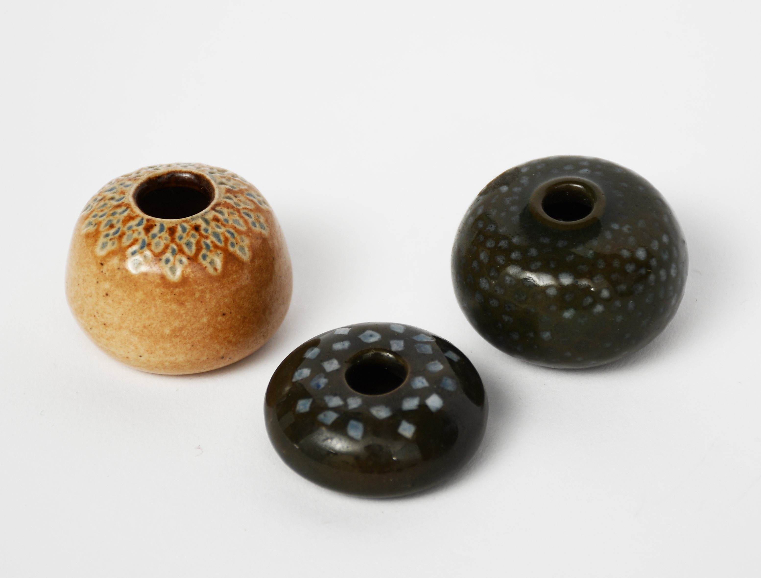 Three Martin Brothers miniature Gourd vases by Edwin and Walter Martin, ovoid one with incised decoration, two with painted design, incised marks, two dated 1904, one possibly 1907 2cm (tallest), (3)