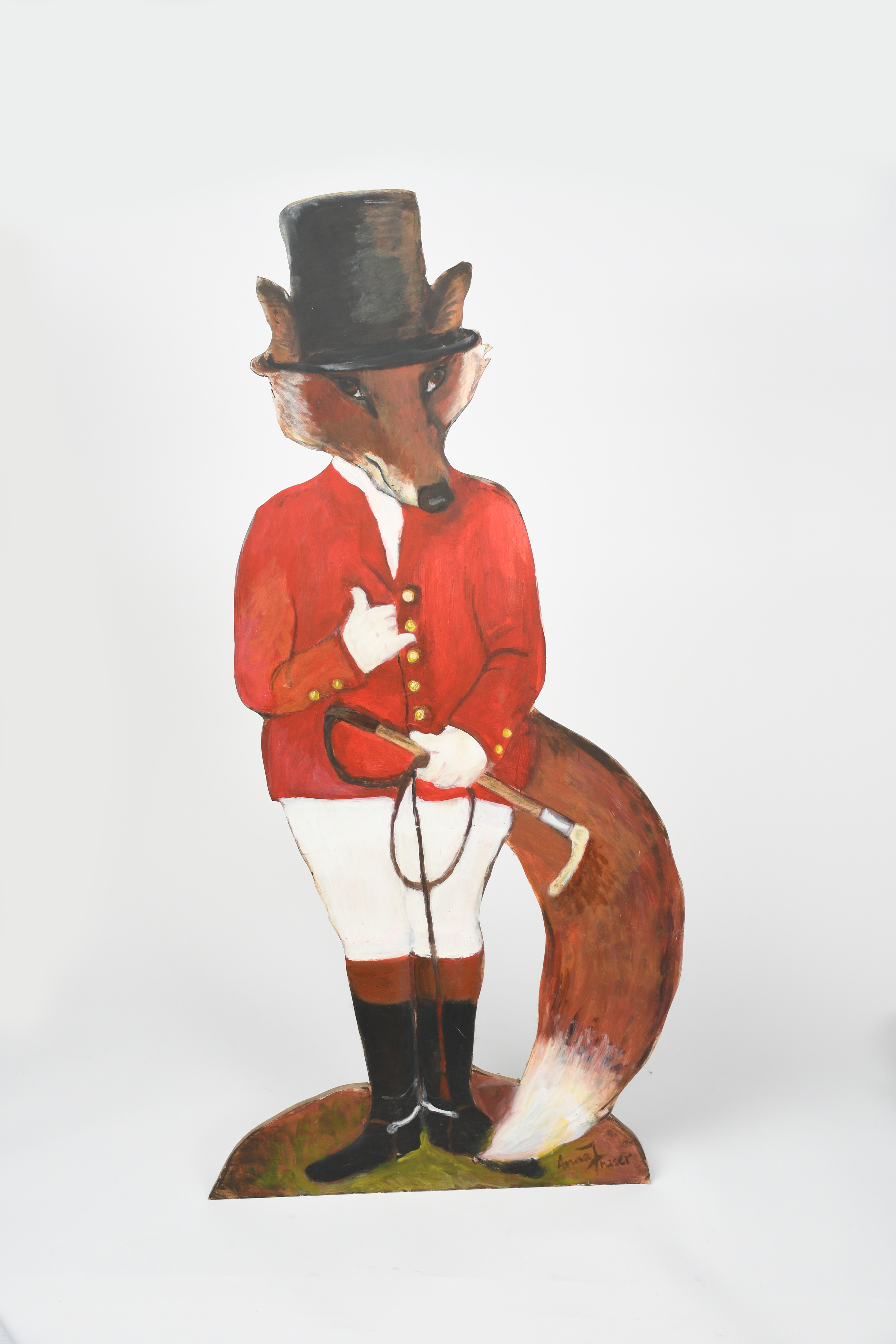 A large free-standing model of a Fox in hunting uniform by Anna Fraser