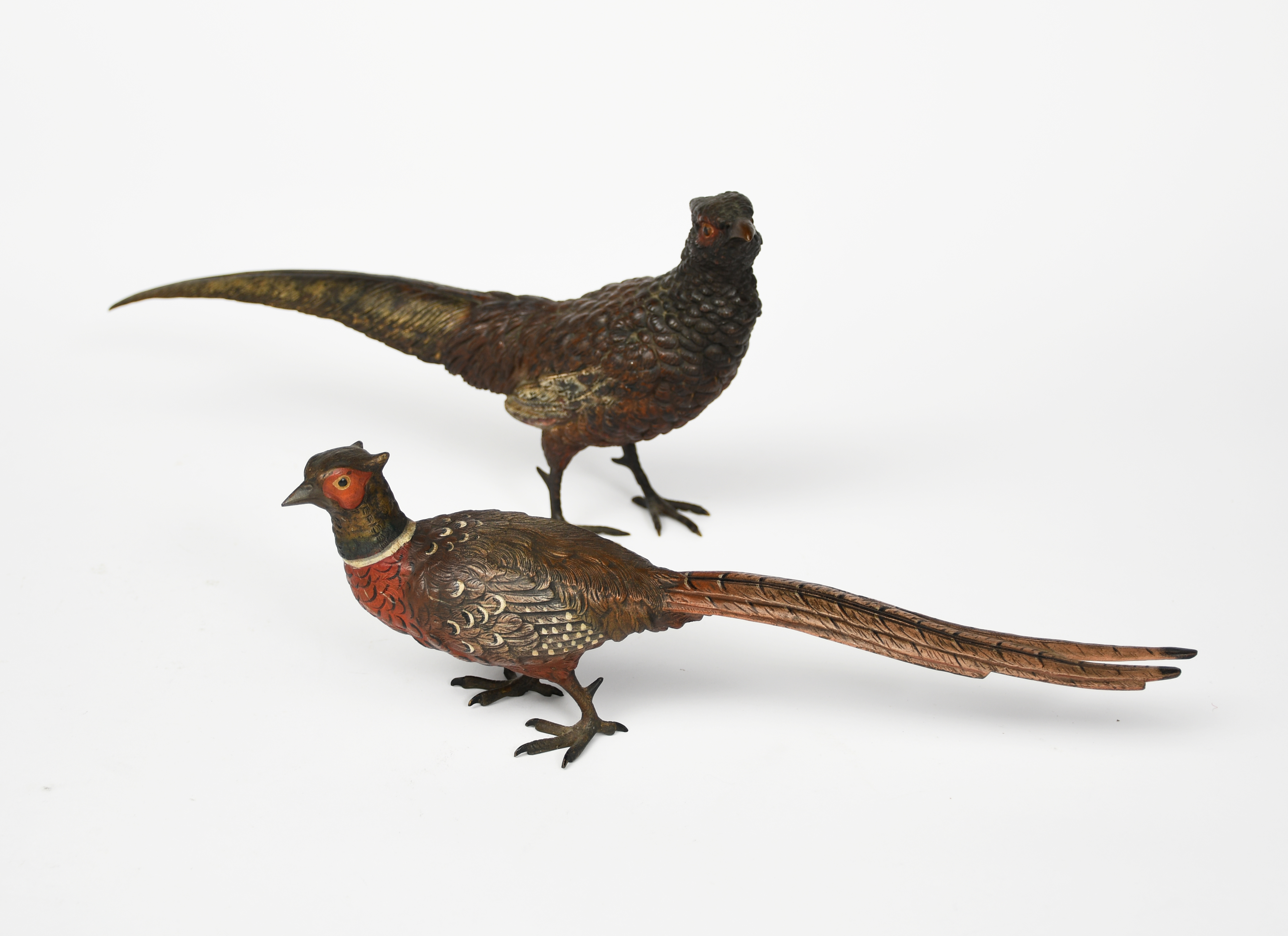 Two large cold-painted bronze models of pheasants