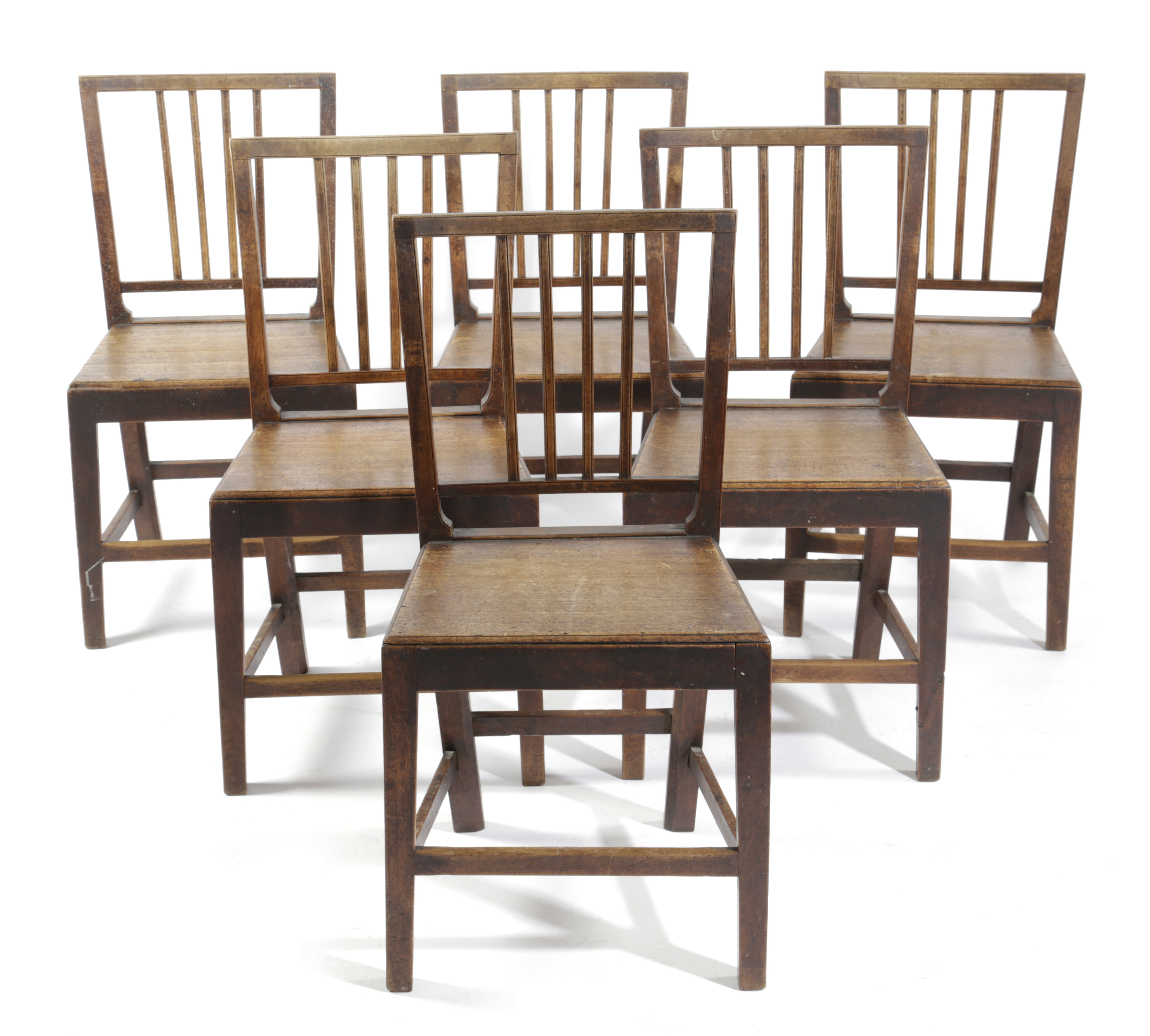 each with a vertical splat back above a solid seat and chamfered legs (6)