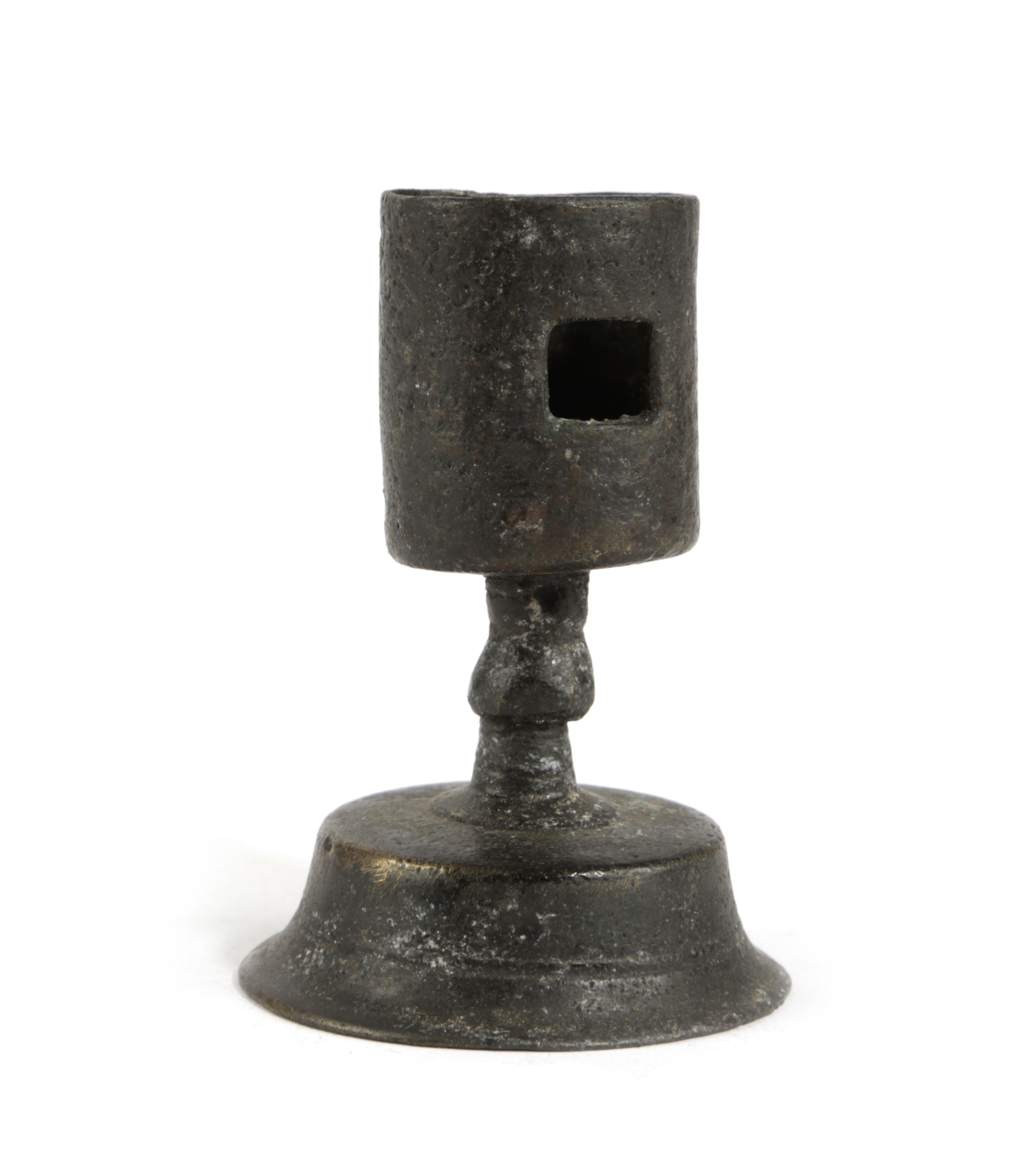 A MINIATURE OR DWARF BRONZE SOCKET CANDLESTICK