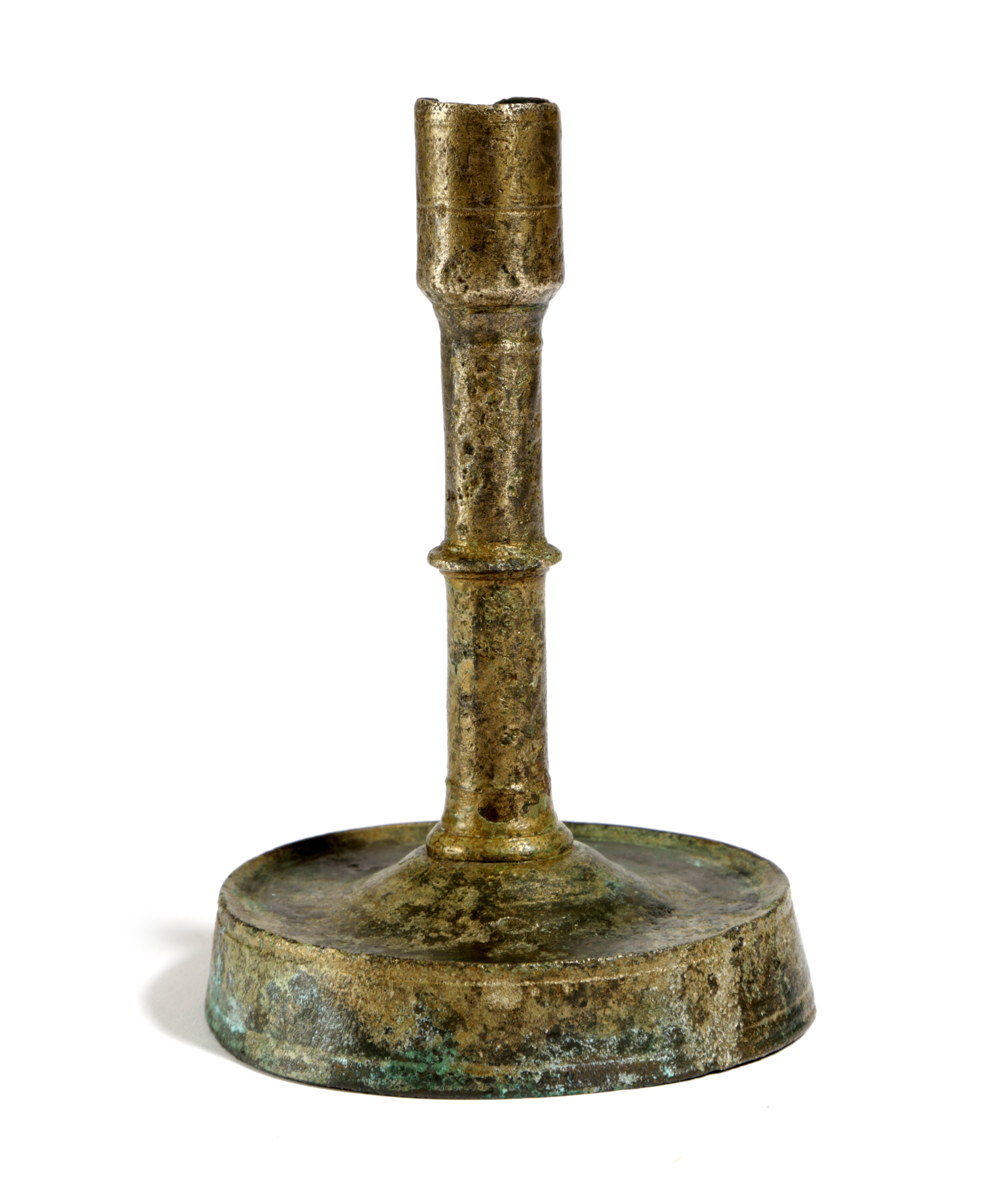 For an analysis of discussion on the composition of the alloys used, see R Brownsword et al, 'Latten' Candlesticks in the Leicestershire Museums' Collection. This report also illustrated two candlesticks comparable to the example being offered here.