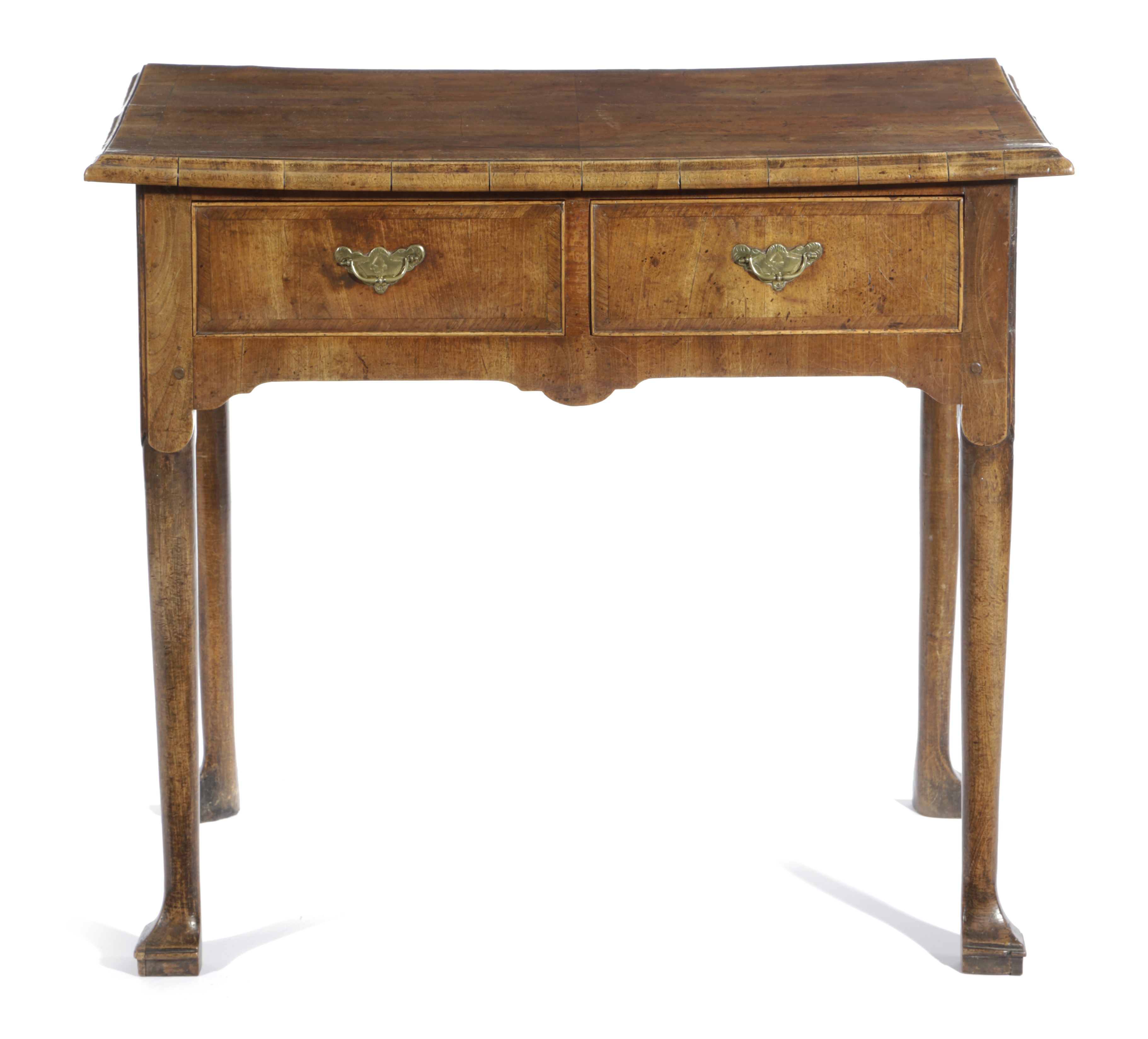 with a quarter veneered and crossbanded top, above a pair of frieze drawers on square section pad feet