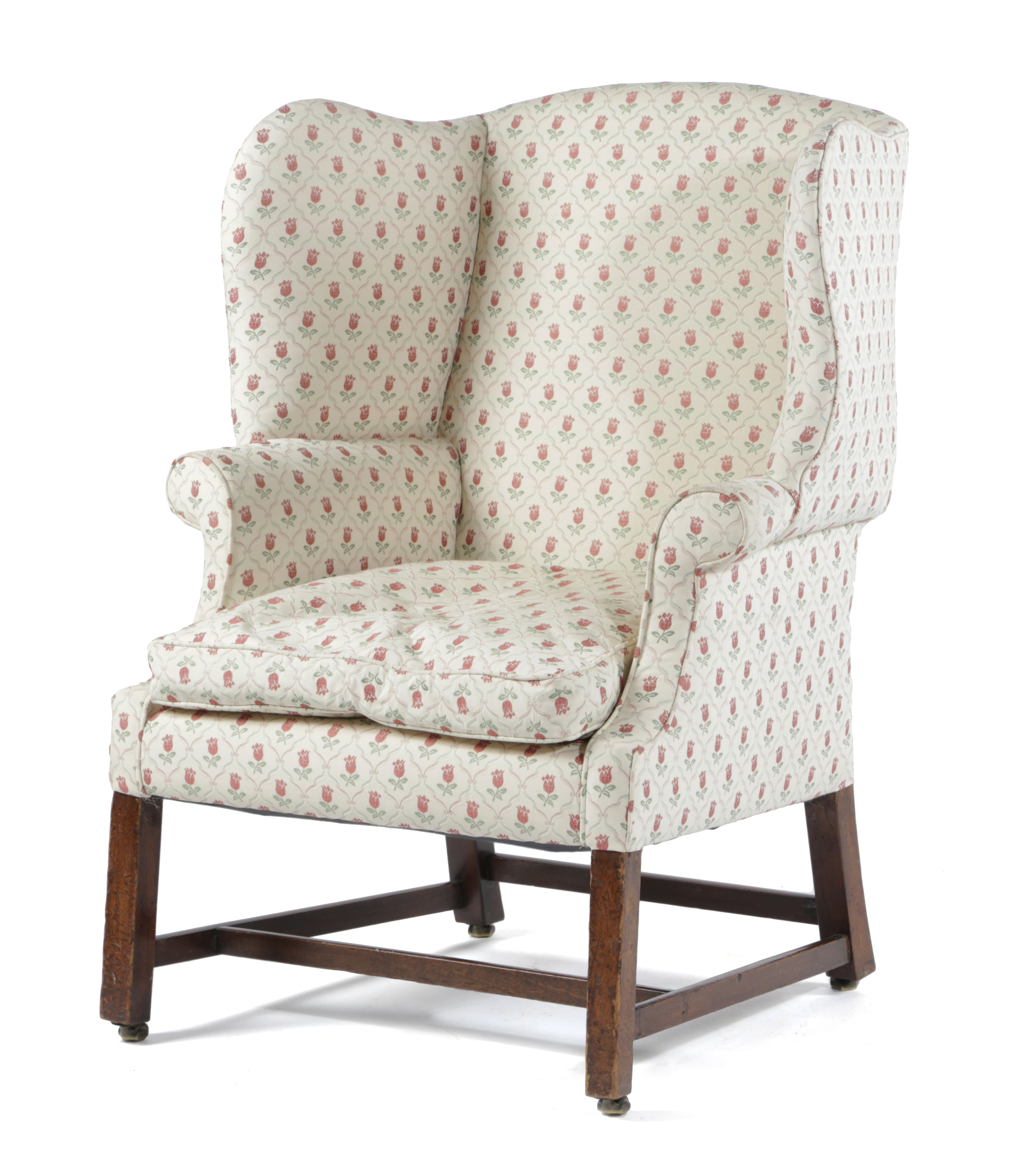A GEORGE III MAHOGANY WING ARMCHAIR