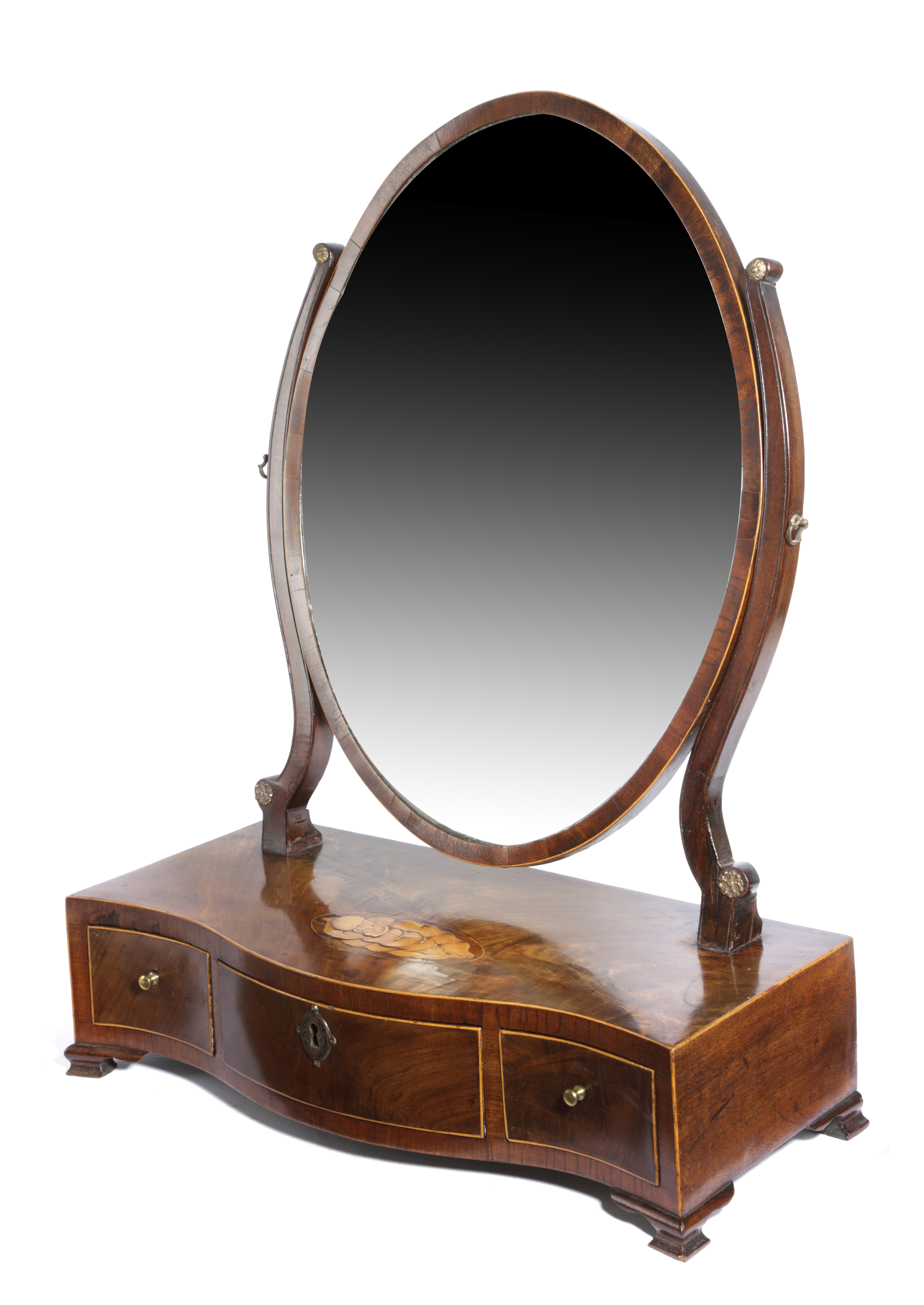 A GEORGE III MAHOGANY DRESSING TABLE MIRROR