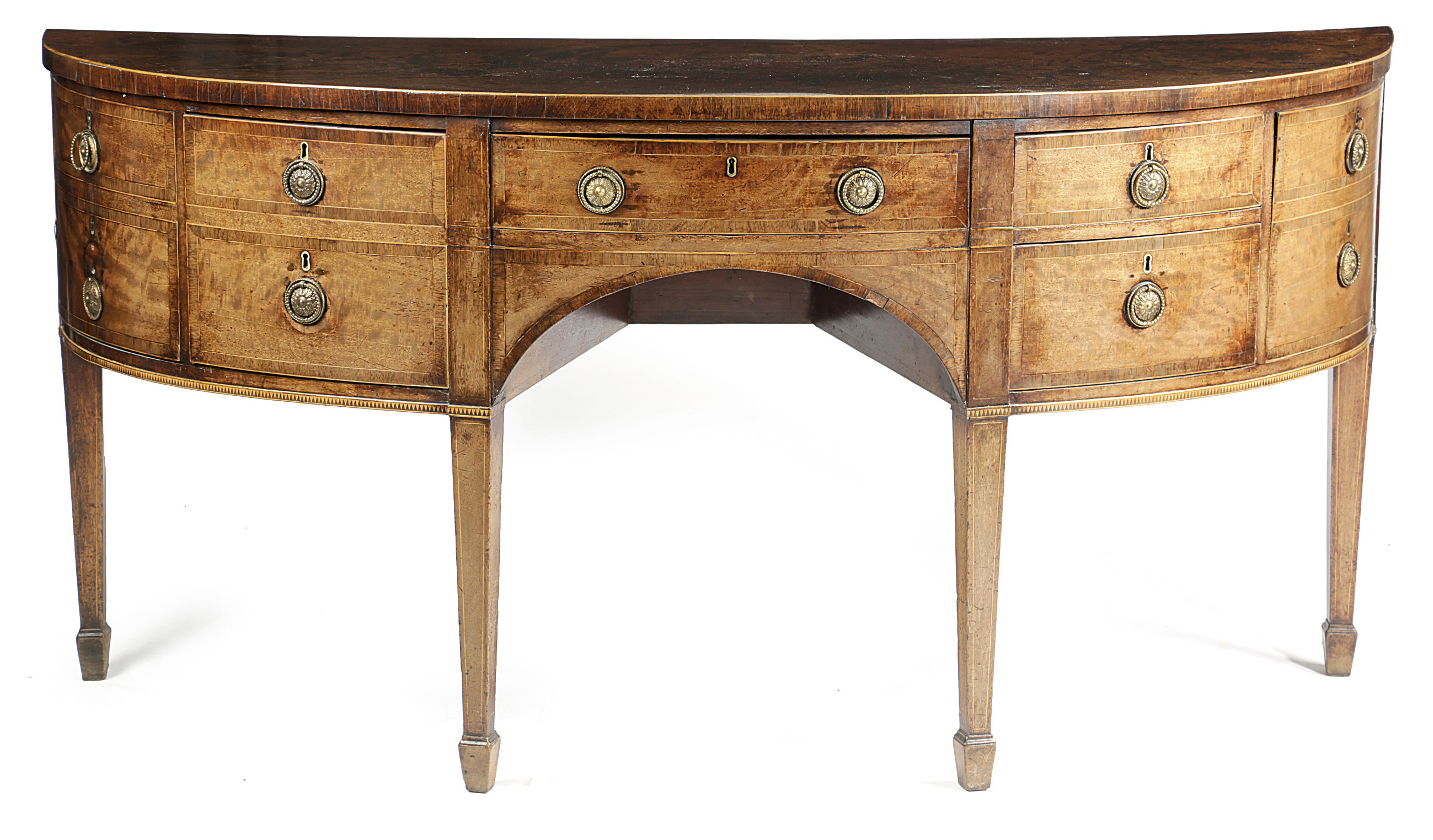 A GEORGE III MAHOGANY DEMI-LUNE SIDEBOARD