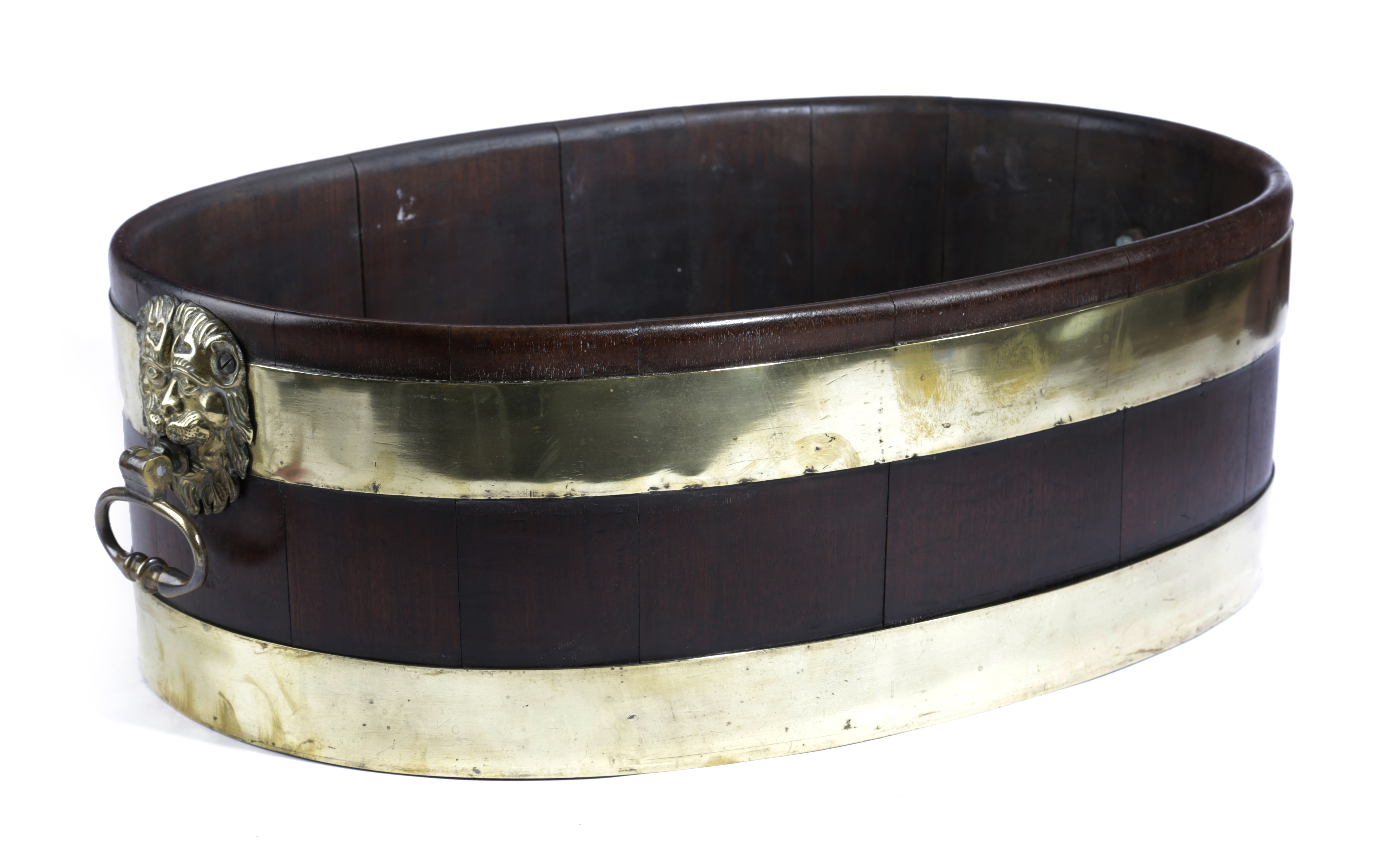 A GEORGE III MAHOGANY AND BRASS BOUND WINE COOLER