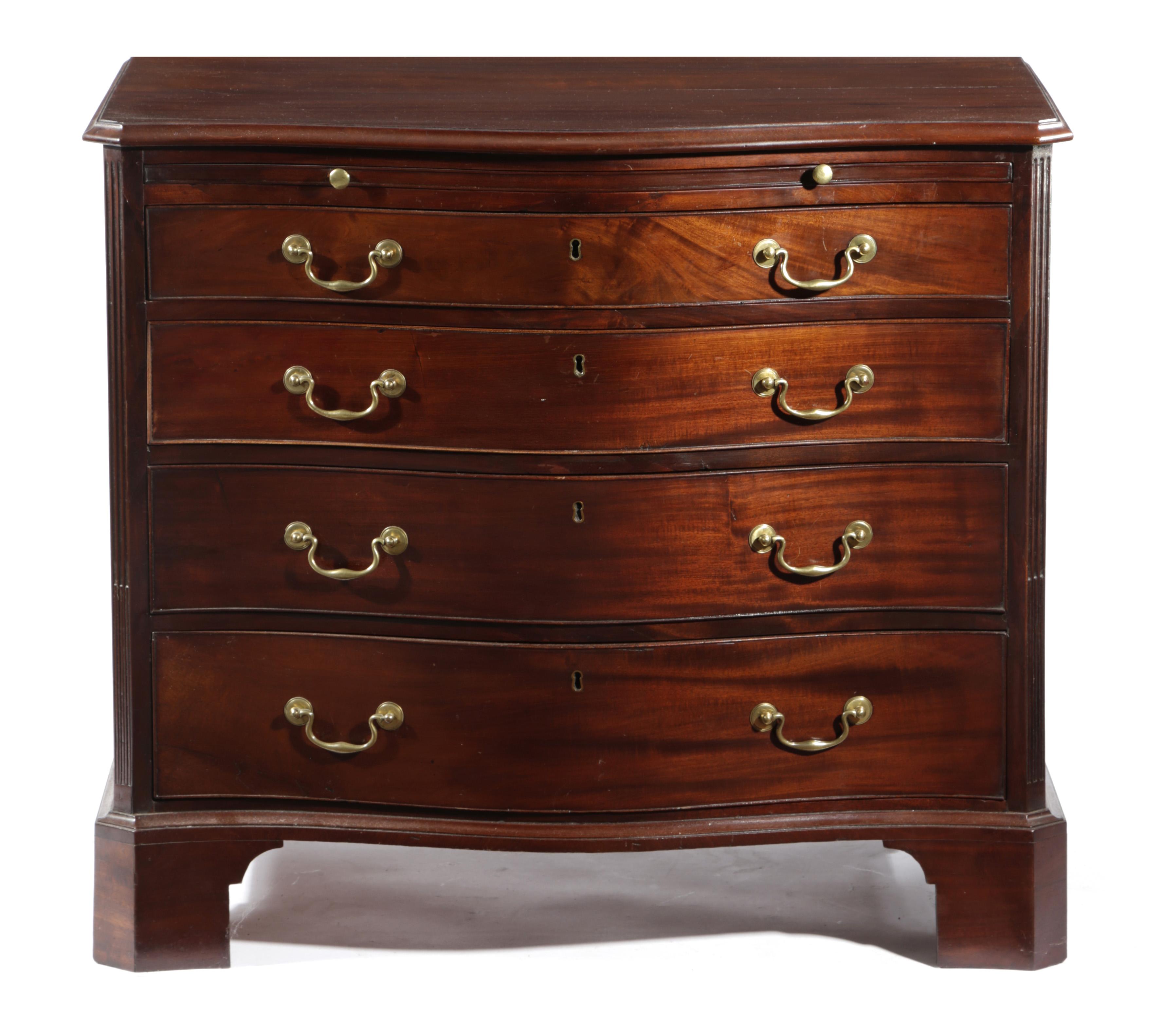 A GEORGE III MAHOGANY SERPENTINE CHEST