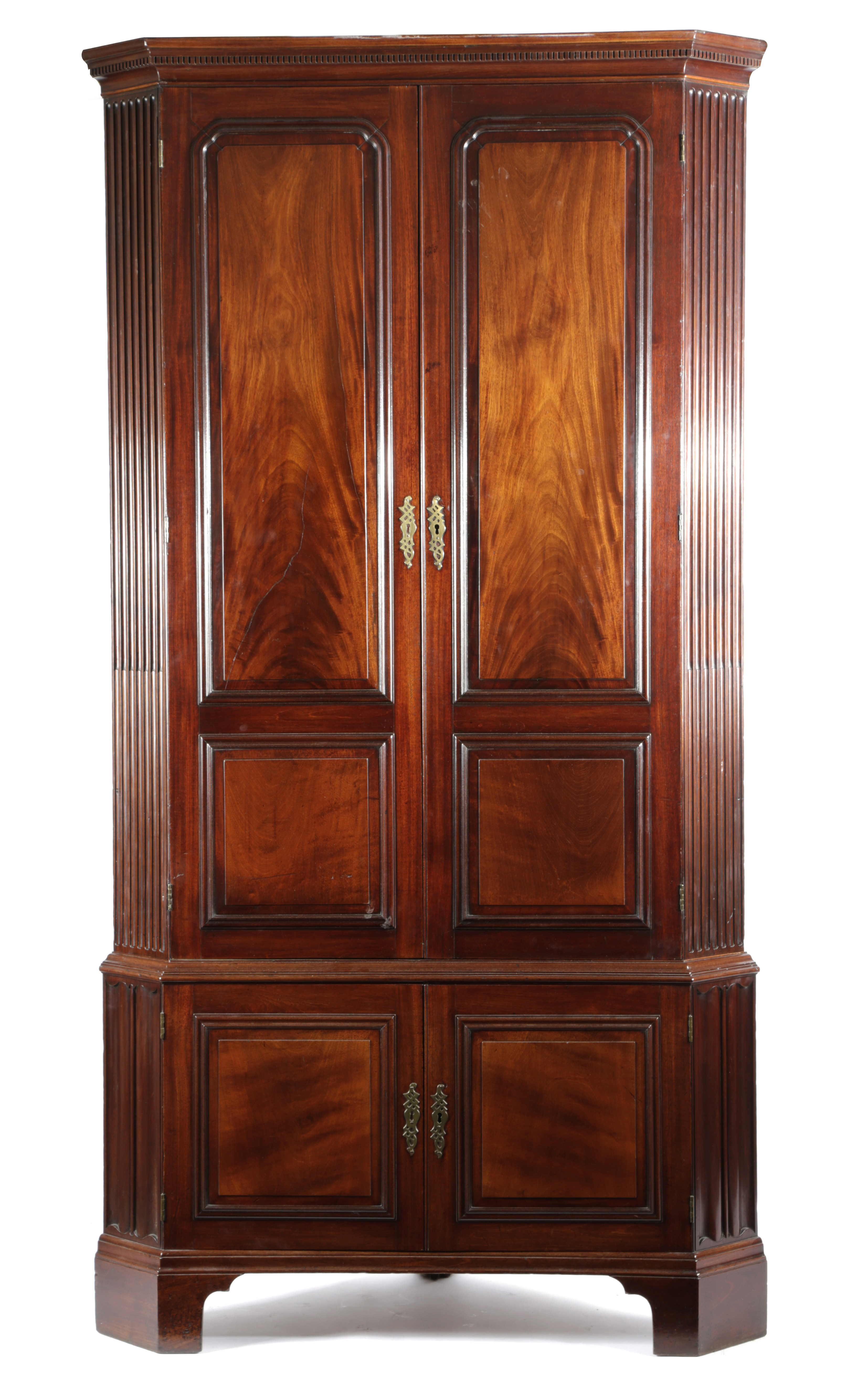 A GEORGE II MAHOGANY STANDING CORNER CUPBOARD