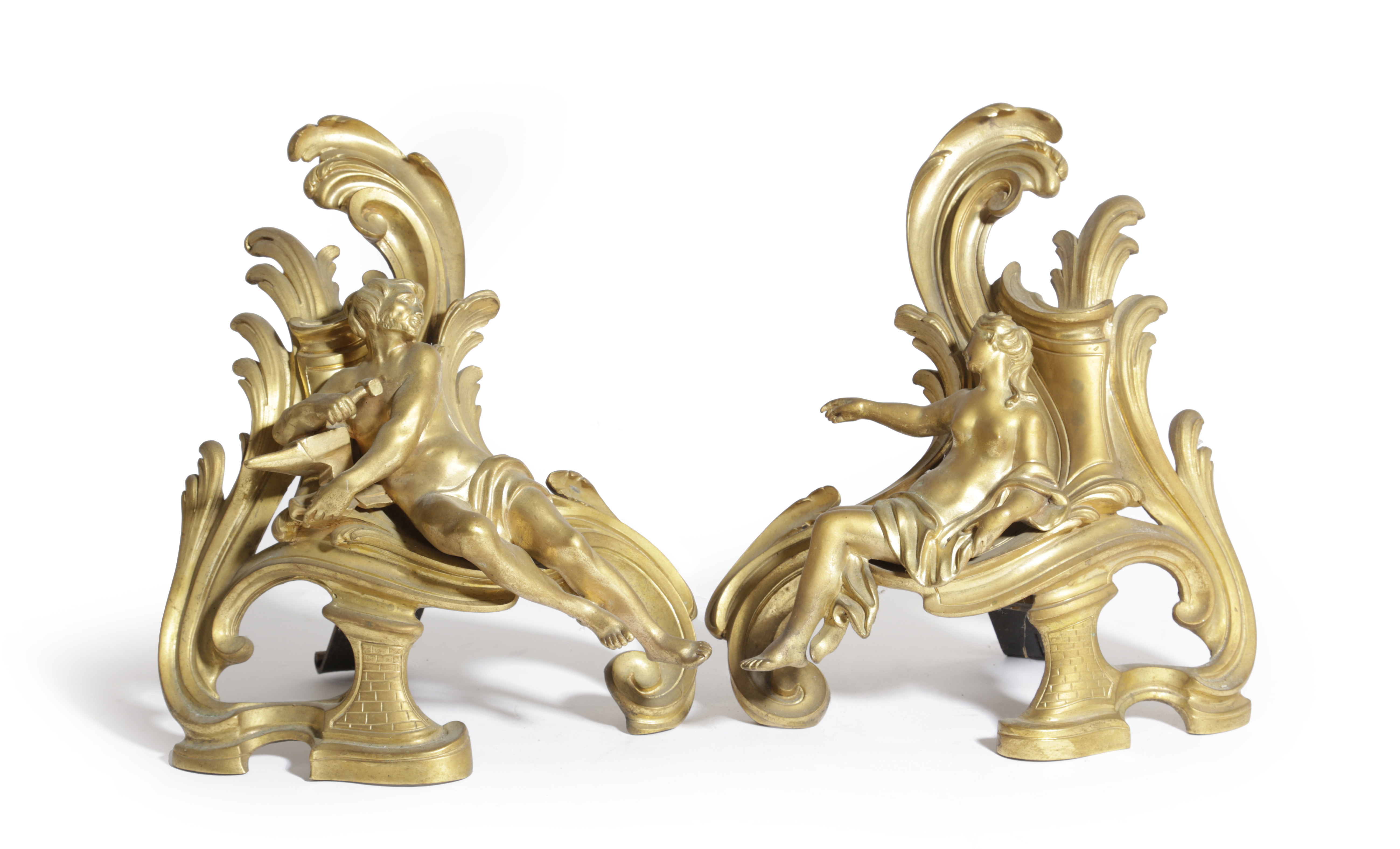 modelled as a man with a hammer and anvil and a classical maiden on Rococo foliate scrolls (2)