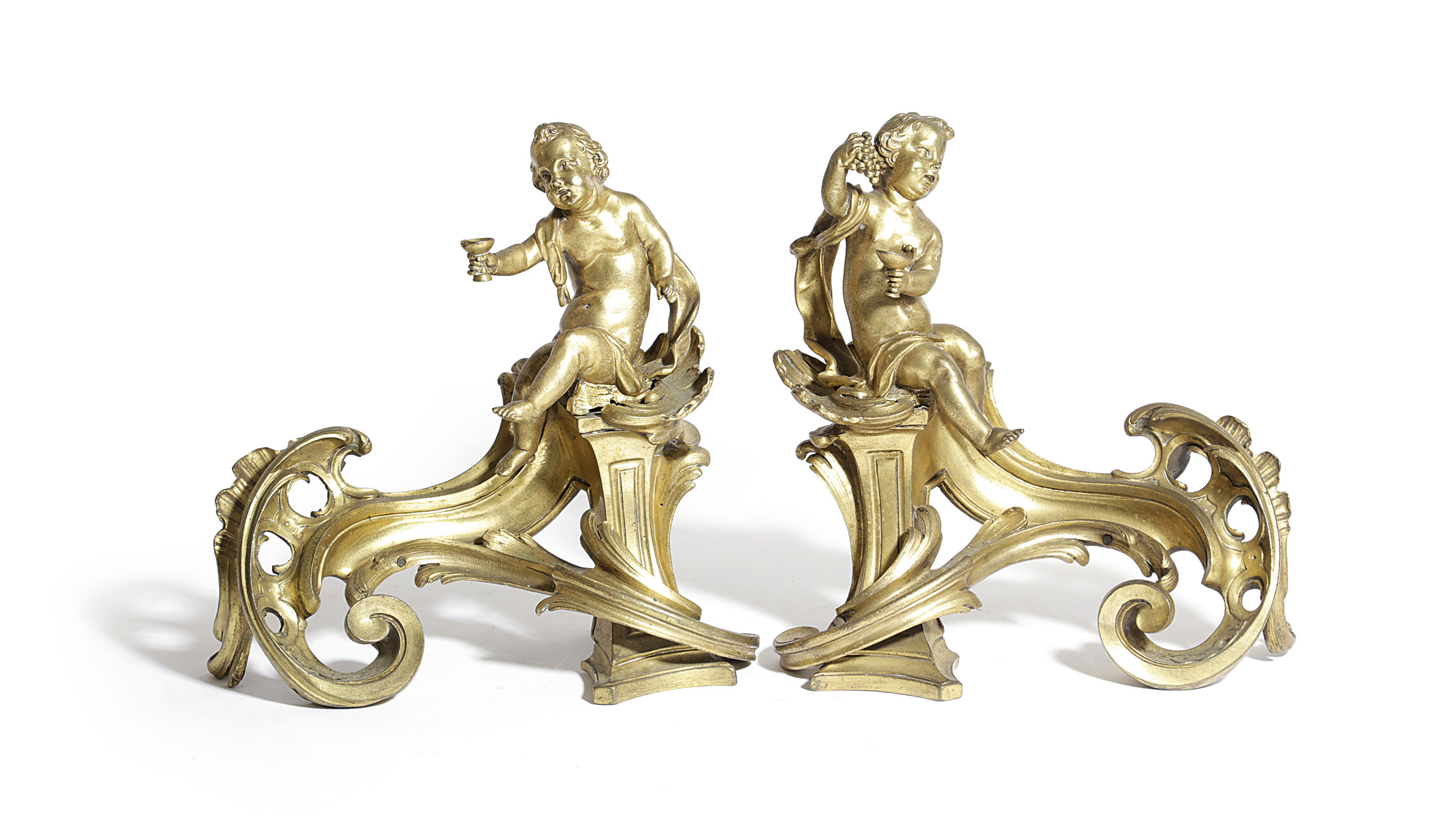 each modelled with a Bacchanalian cherub, on foliate 'C' scrolls (2)