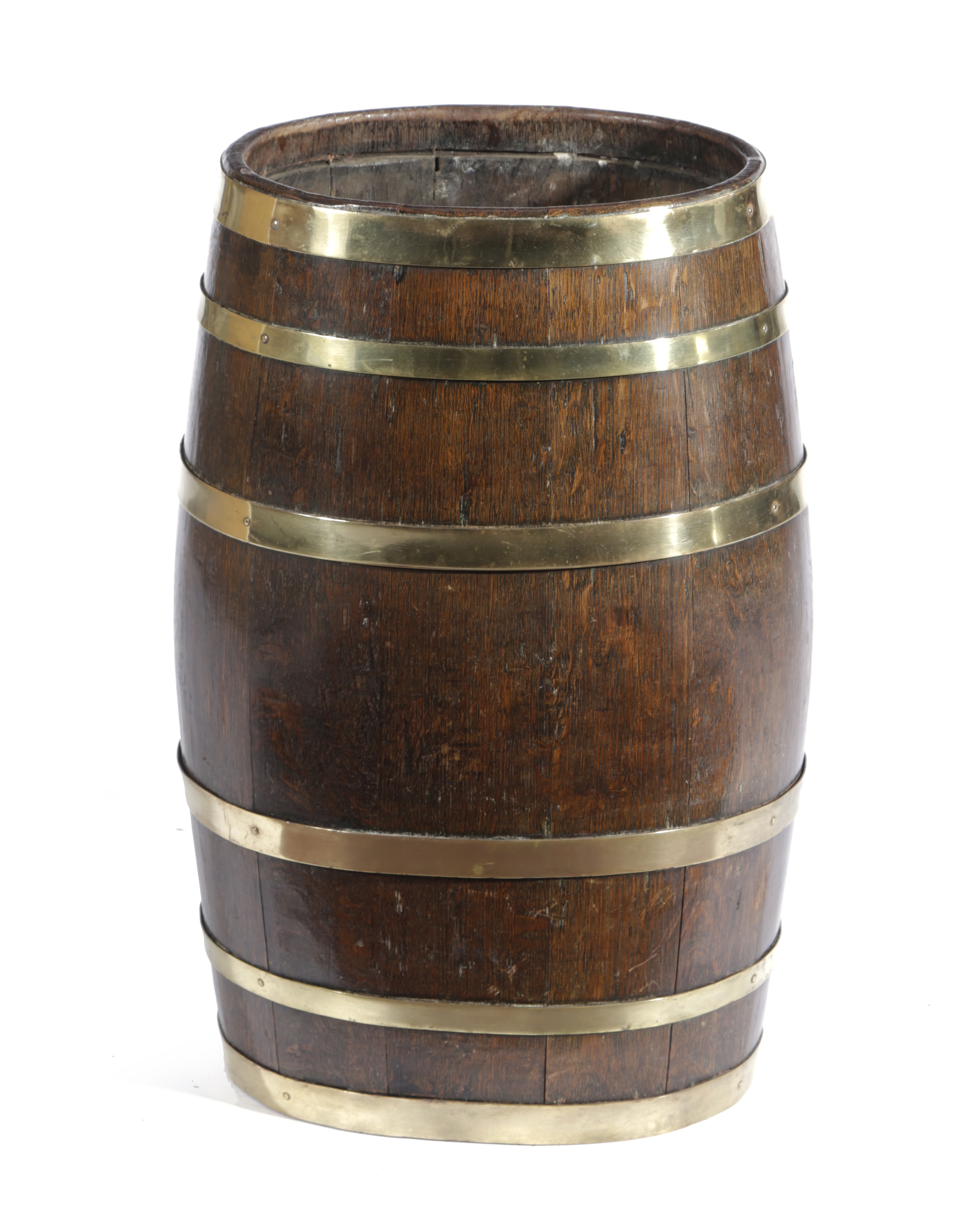 AN OAK AND BRASS BOUND BARREL STICKSTAND
