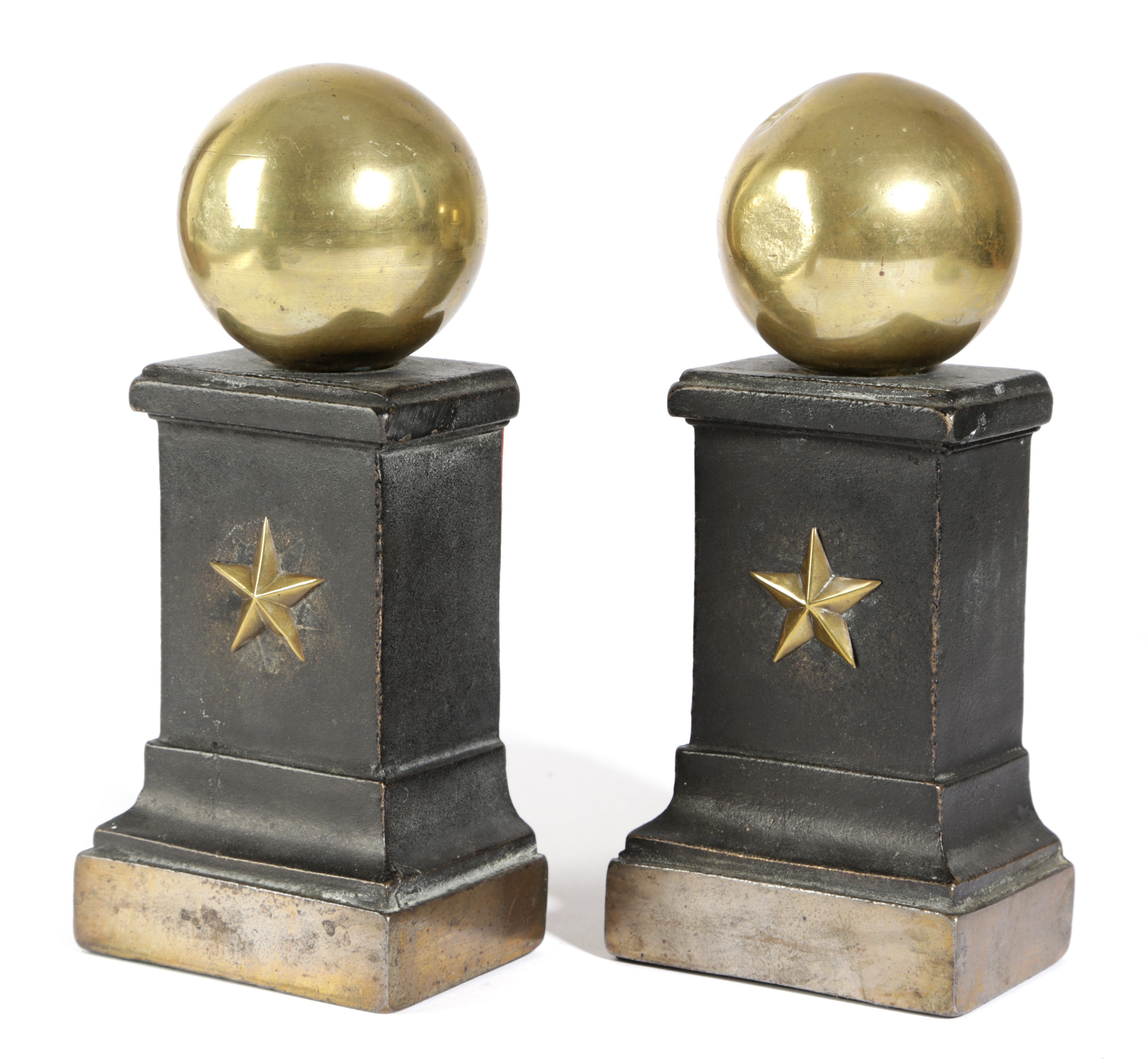 A PAIR OF PATINATED BRASS DOORSTOPS