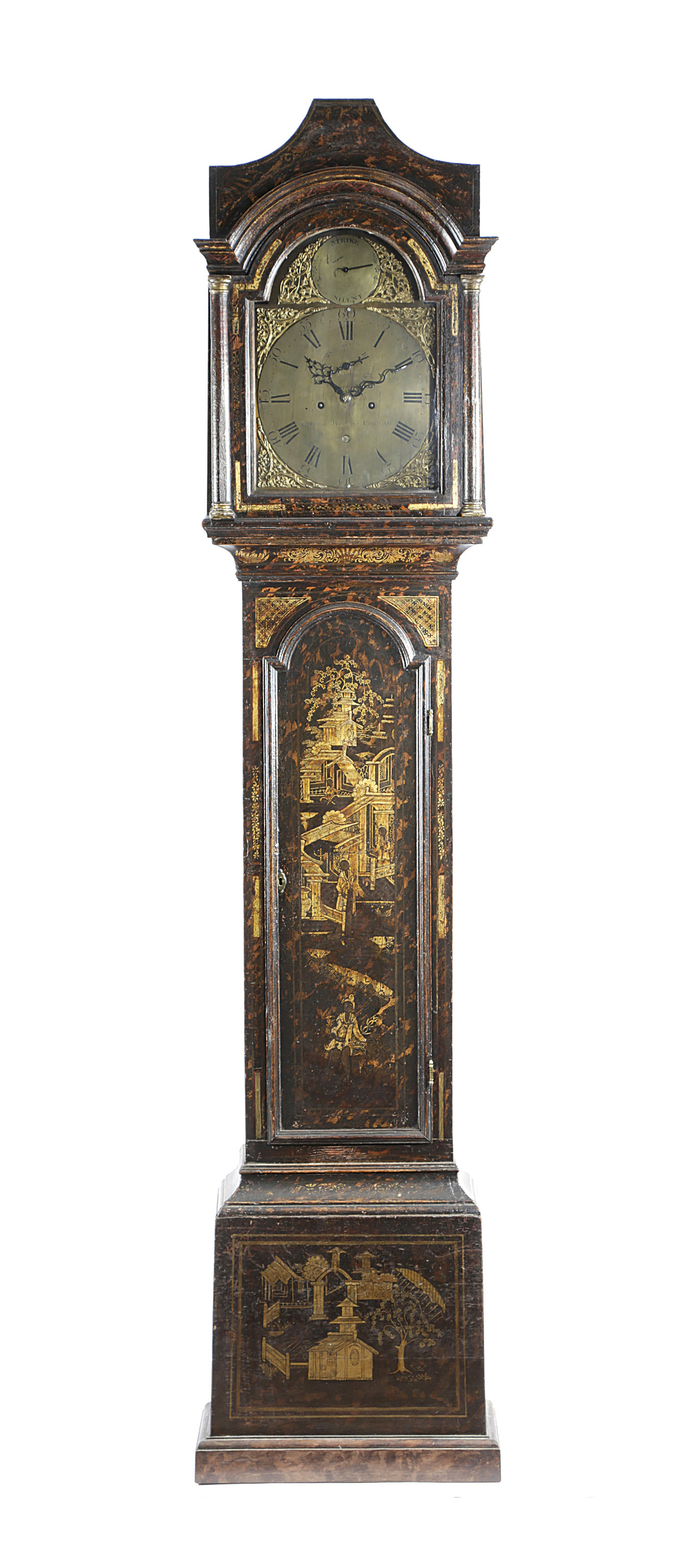 A GEORGE III JAPANNED LONGCASE CLOCK