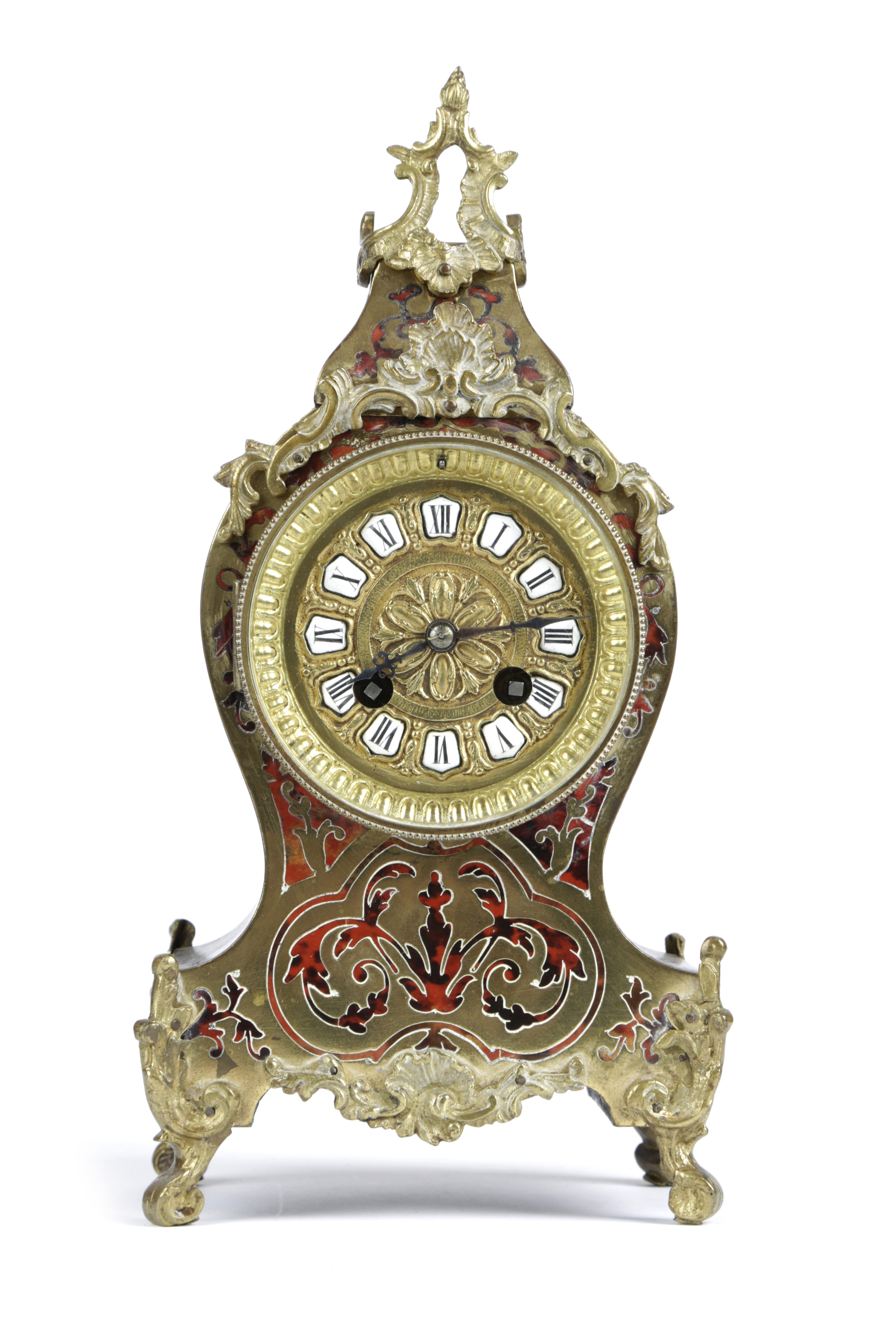 A FRENCH BOULLE MARQUETRY MANTEL CLOCK