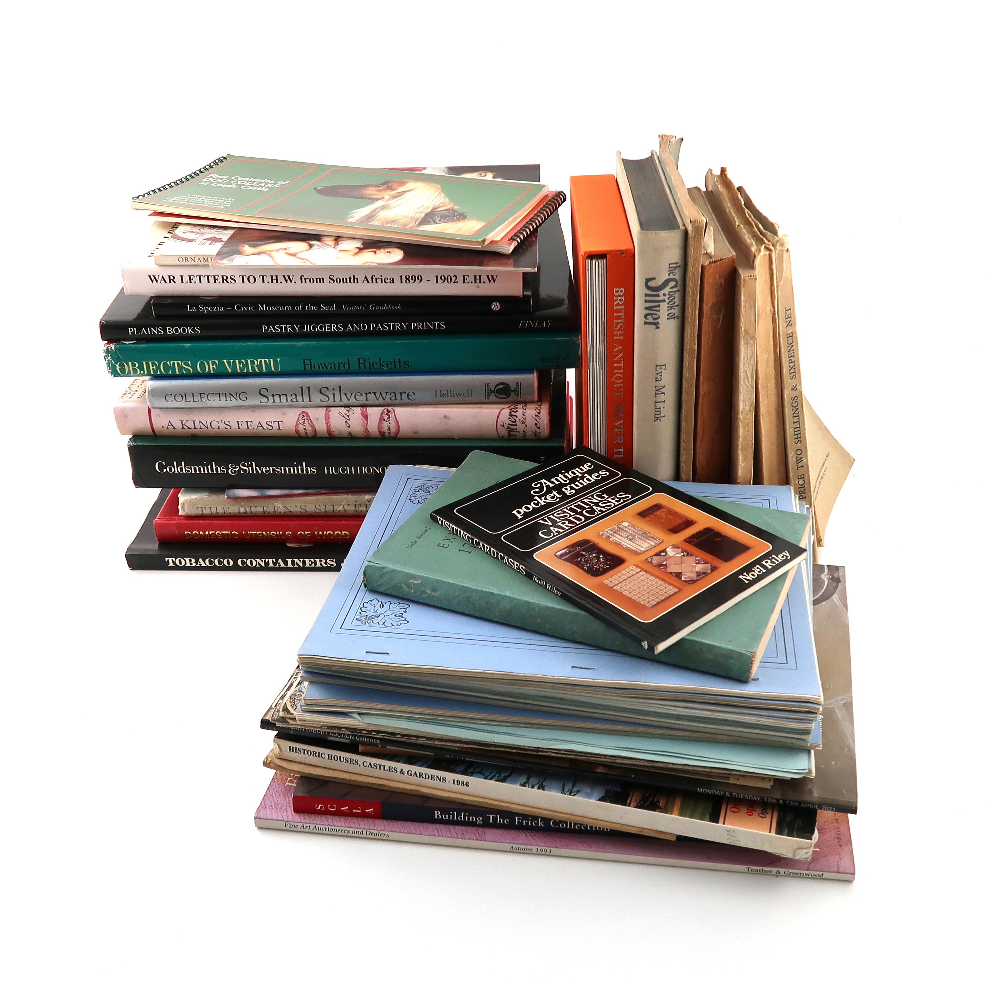 including: Honour, H., Goldsmiths and Silversmiths, Collecting Small Silverware, A King's Feast, The Queen's Silver, Objects of Vertu, Pastry Jiggers, and other volumes including five pamphlets on dog collars. (qty)